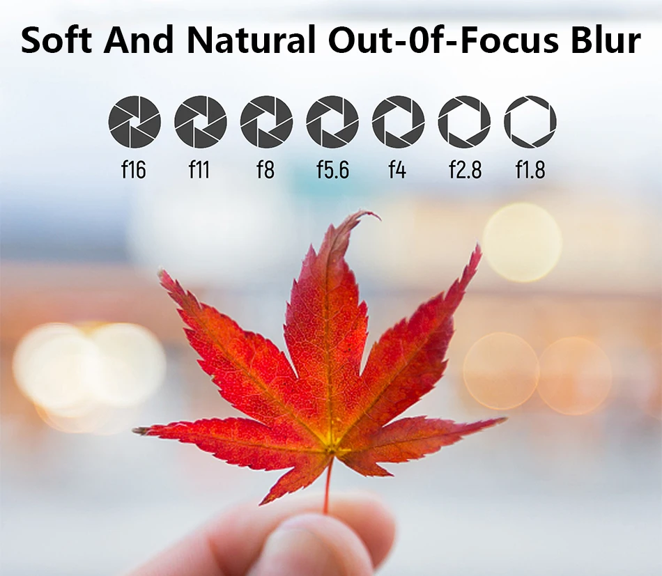 F1.8 Большая диафрагма может снимать красивый фоновый эффект боке, яркие линзы также могут снимать высокоуровневые работы в низкий светильник и съемку в помещении