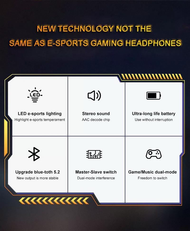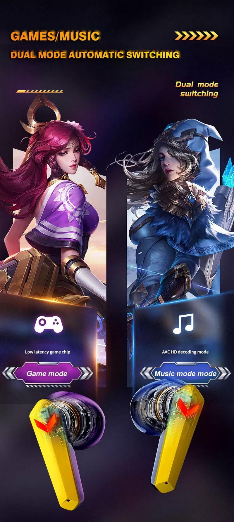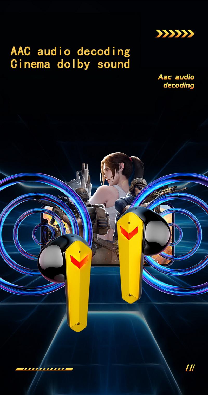 Продукт:TWS игровые гарнитуры Наушники Bluetooth 5,2 наушники двойной режим низкая латентность HiFi стереоМузыкаНаушники с микрофоном