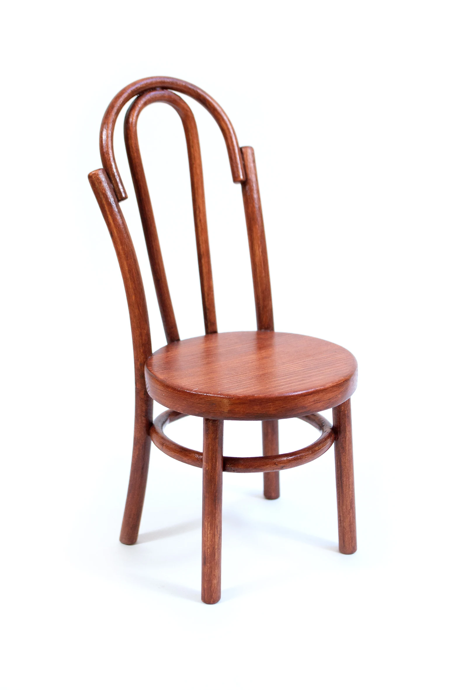 Стул: высота сиденья (от пола) — 8,5 см, диаметр сиденья — 8,5 см, общая высота стула со спинкой — 19 см.