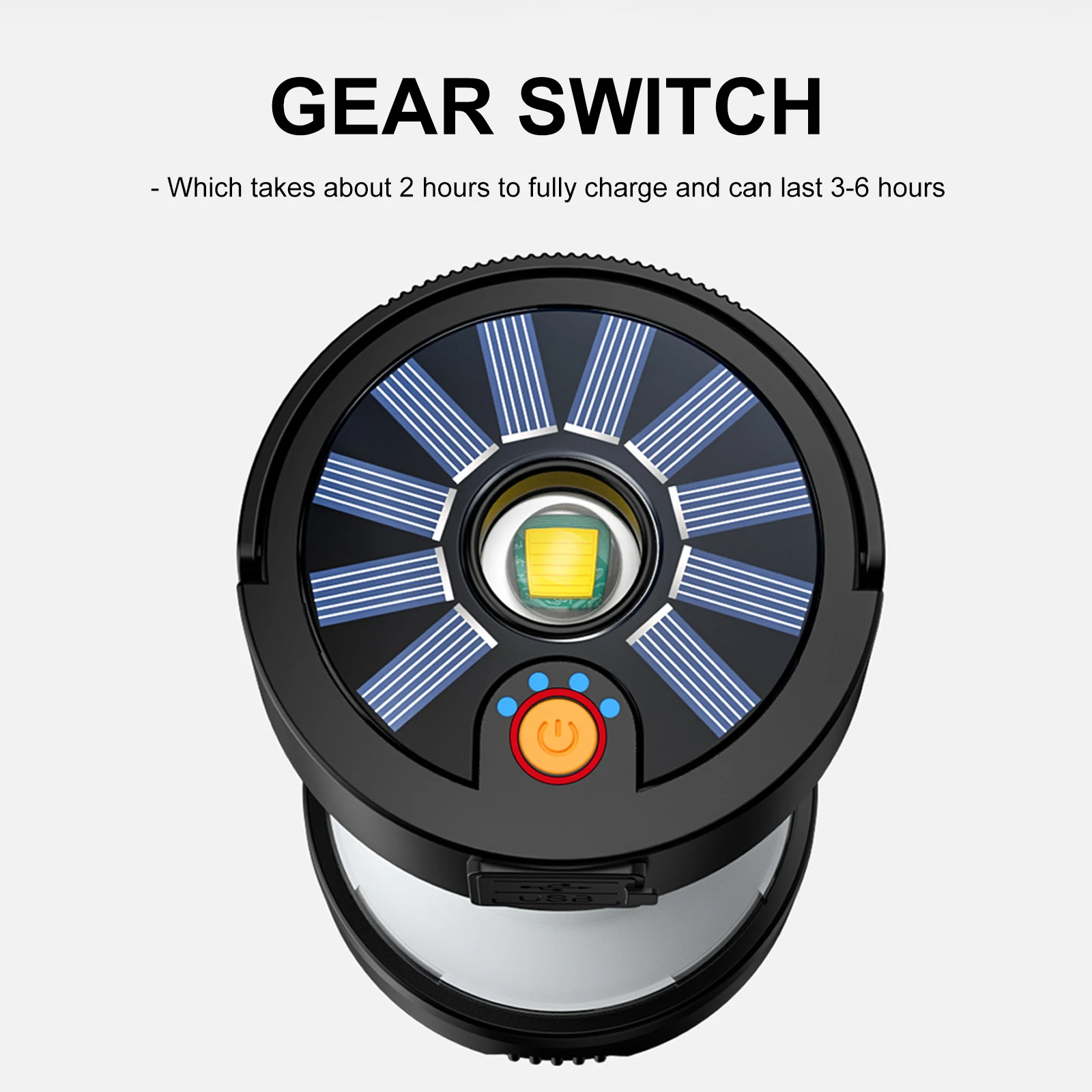 LED Camping Lantern - Solar & USB Charging, Outdoor Emergency Lights, Multifunctional Tent Light with 4 Light Modes, Portable & Lightweight Lamps with Handle, Power Bank for Phone, Magnetic Lights for BBQ, Running, Fishing, Camping Accessories