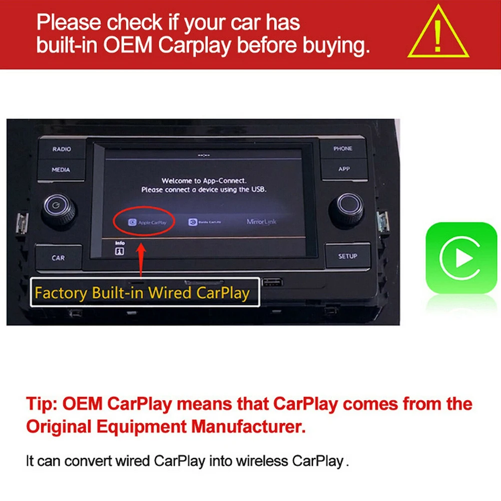 Примечание:Пожалуйста, убедитесь, что ваш заводской автомобиль имеет проводную функцию OEM CarPlay.