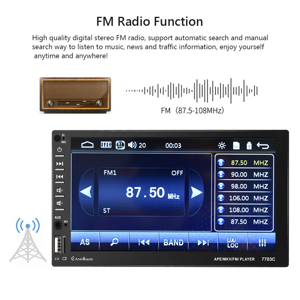 4. Fm-радио: онлайн-музыка, вы можете передавать музыку на автомобильную стереосистему через FM, наслаждаться оригинальным стереозвуком автомобиля и с 18 предустановленными радиостанциями