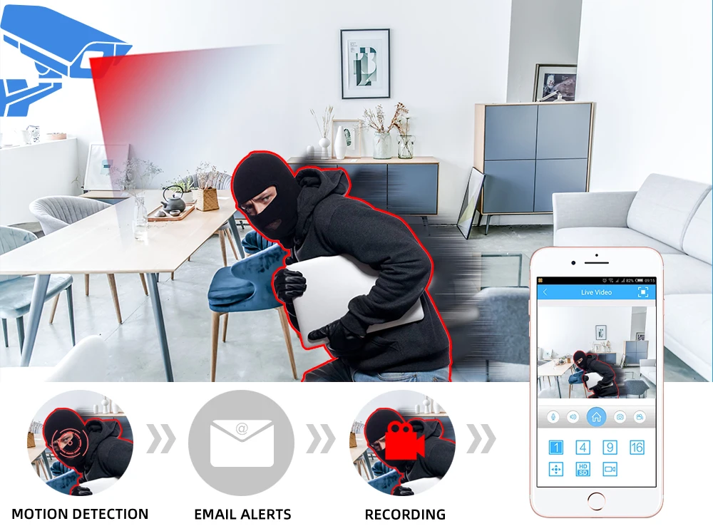 Можно настроить область, которую вы хотите контролировать, когда она срабатывает, она отправит сообщение на вашу электронную почту, вы можете получить информацию из первых рук, независимо от того, когда и где вы находитесь.