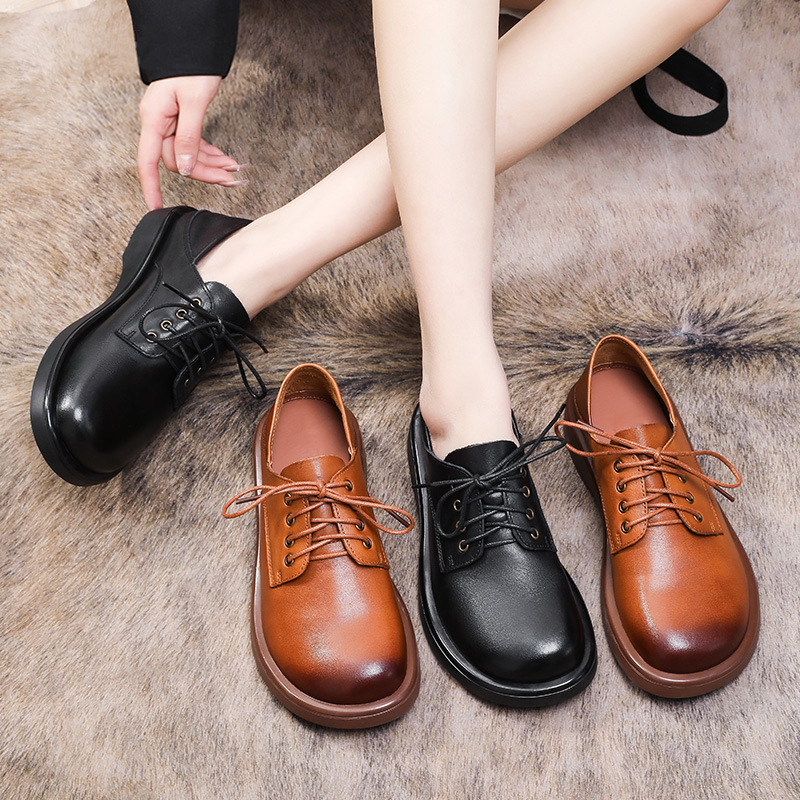 Женские босоножки в этническом стиле мягкие кожаные сандалии с круглым носком и