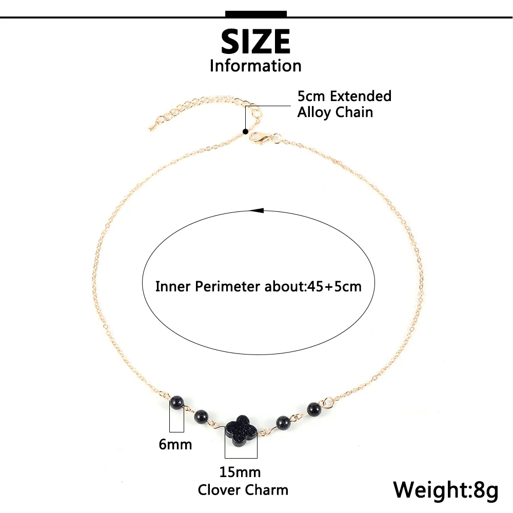 Item:Four Leaf Clover Necklaces Jewelry Metal Alloy Chain Real Natural Stone Green Aventurine Opal Pendant Boho Women Girls Chokers