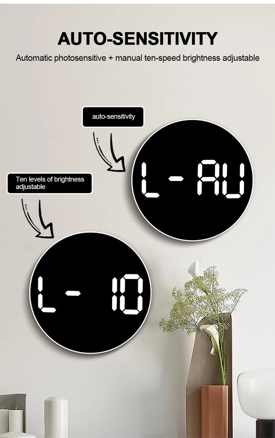 ▶Автоматическая фоточувствительная + Ручная десять-скоростная регулировка яркости