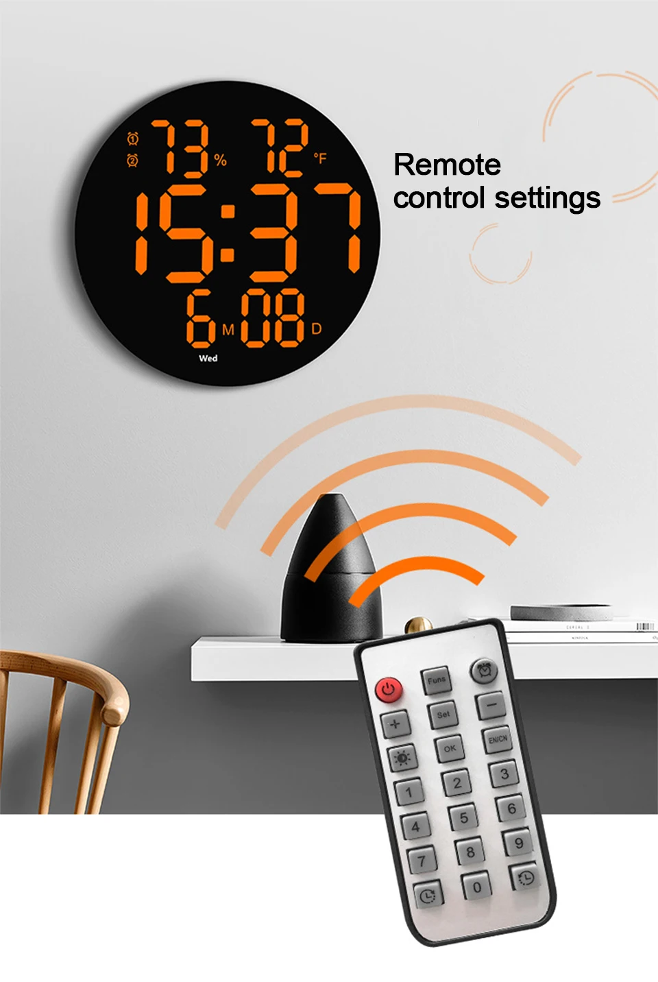 10 дюймов круг часы-будильник большой Экран цифровые настенные часы 12/24 часов, время/неделя/дата/температура Дисплей Гостиная круглый немой
