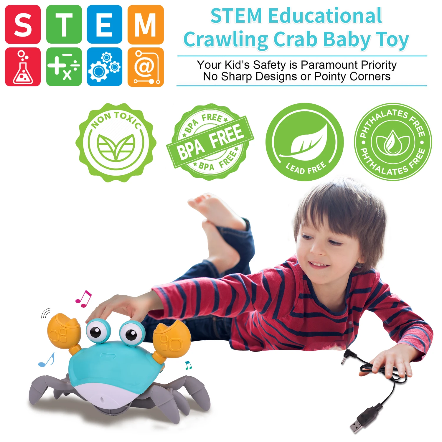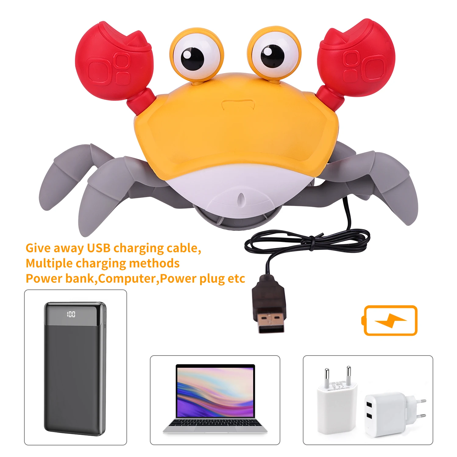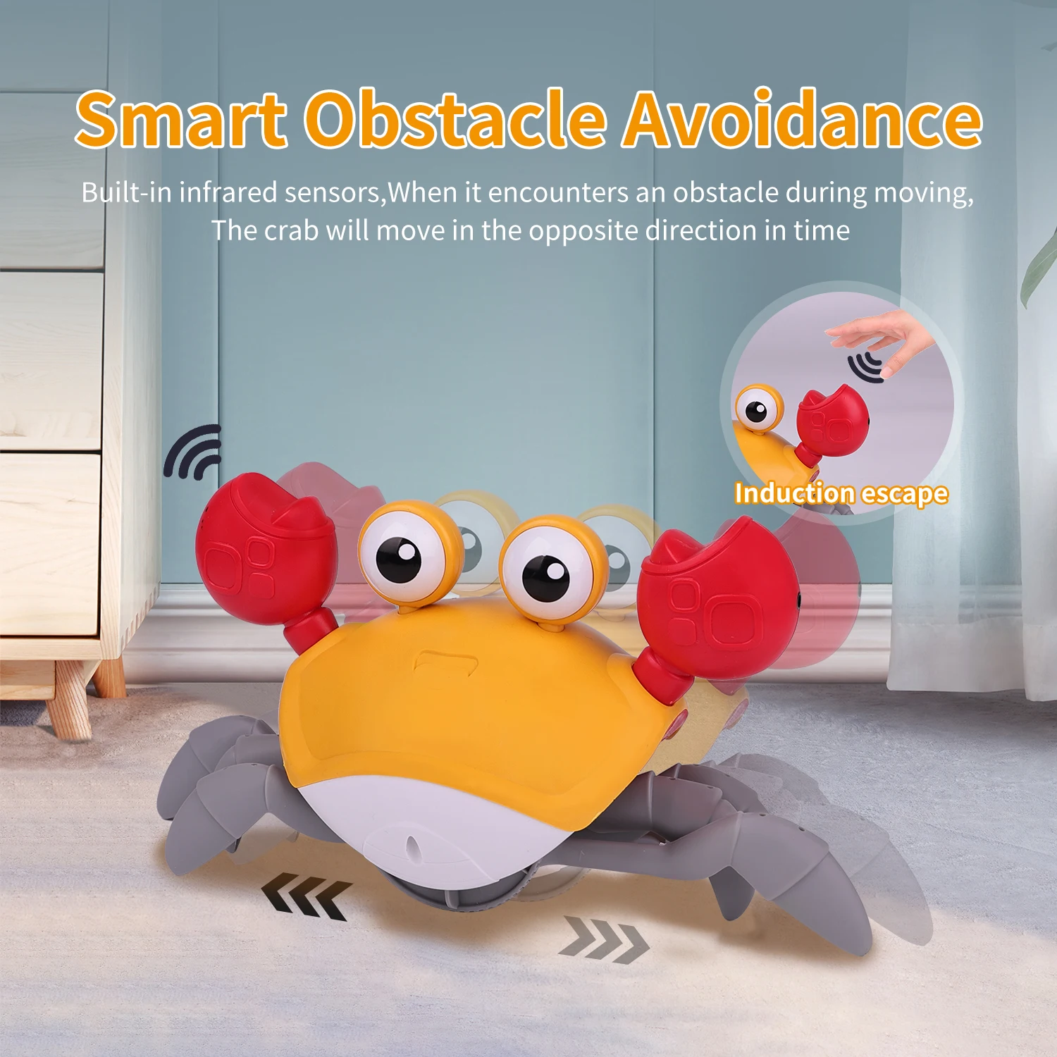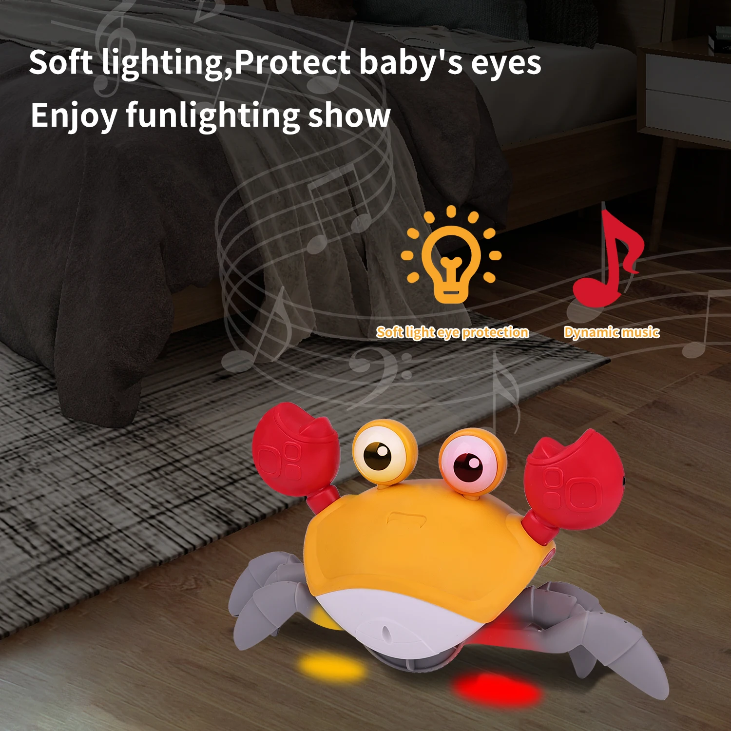 Levfao оранжевый ползающий Краб детская игрушка с музыкой и светодиодный светильник, с сенсором функция избегания препятствий, встроенный аккумулятор, Интерактивная развивающая игрушка для малышей и детей