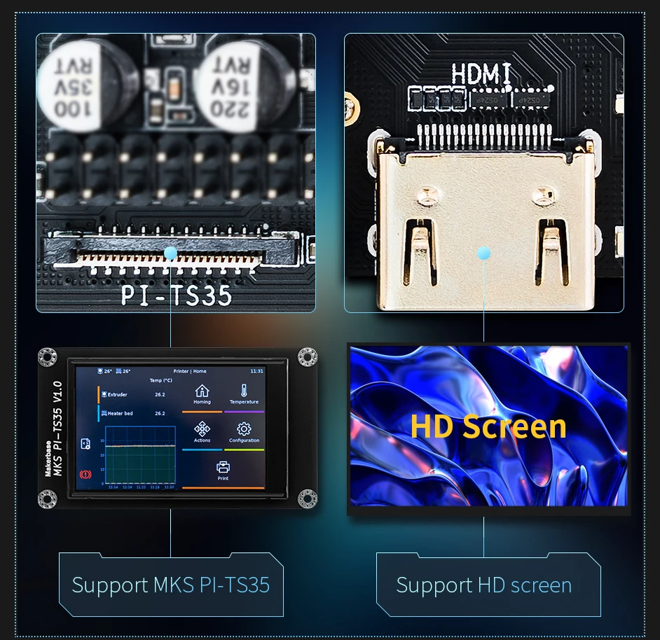 Makerbase MKS PI плата Quad-core 64bits SOC Бортовая работает с зажимом и 3 5/5-дюймовый сенсорный