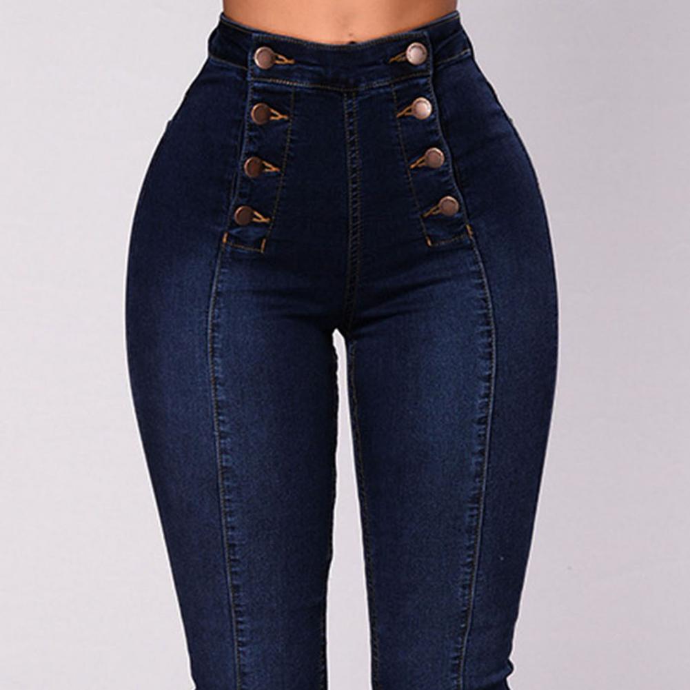 Женские джинсы с высокой талией и пуговицами, с карманами, с эффектом пуш-ап, модные облегающие двубортные джинсы-карандаш, уличная одежда