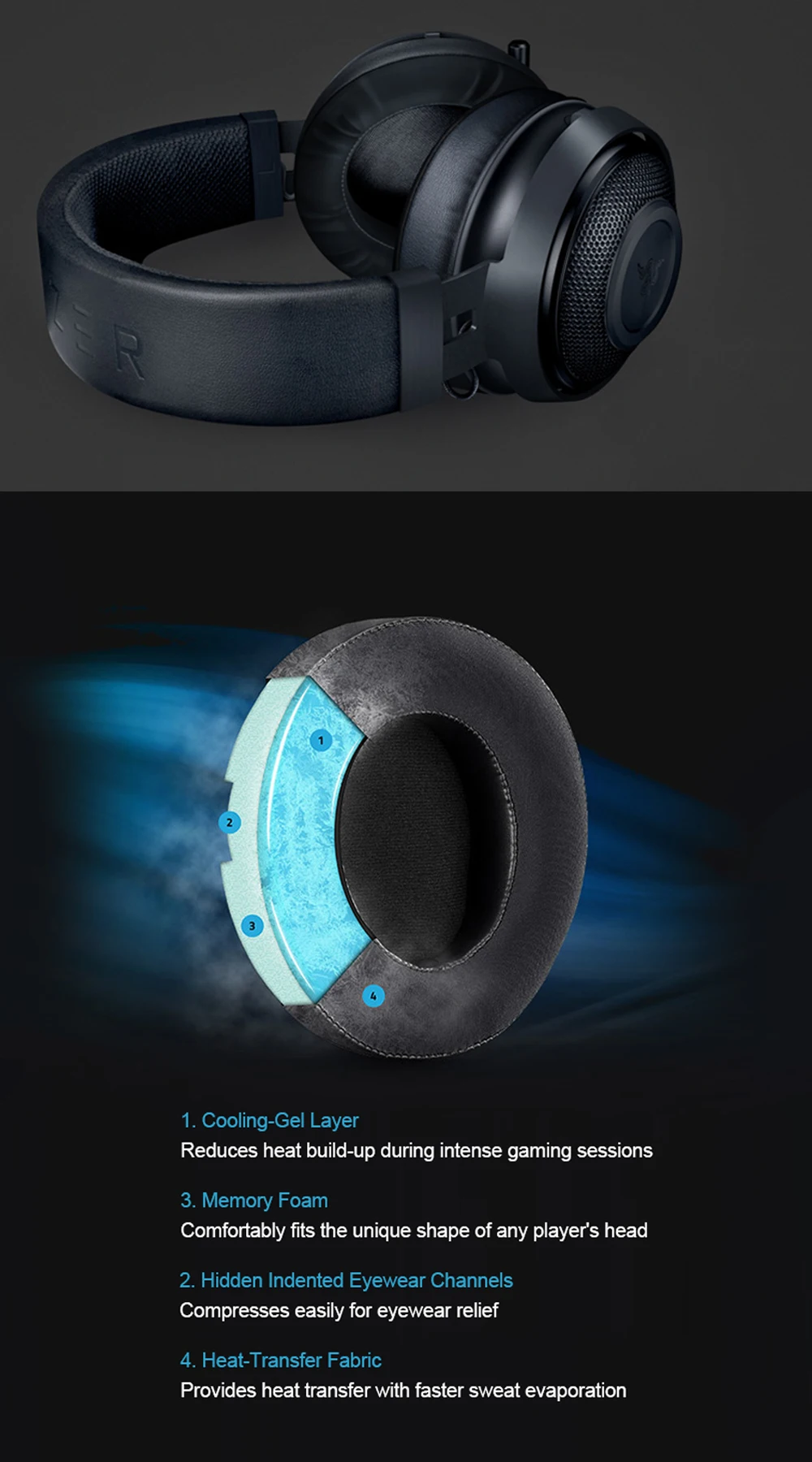 Четкое и точное позиционное аудио. Оснащен 7.1 программное обеспечение объемного звука, чтобы вы могли попробовать точное позиционное аудио при игре, И вы сможете поймать направление, откуда приближается действие, чтобы вы были готовы атаковать во время стрельбы. Светильник и мощный звук. 50 мм элементы драйвера позволяют наслаждаться верхним и глубоким звуком и яркой четкостью звука для широкого звукового пейзажа. От тонких шагов, скрывающихся за вами, для климатических взрывов, которые дуют вас, каждая деталь звука слышна, когда вы играете с Razer Kraken. Толстая Наполняющая головка. Мы улучшили обивку банданы и сделали ее еще толще, как только она снимает большее давление на вашу голову для длительного комфорта. Боксит алюминиевая рама Razer Kraken делает светильник, гибкий и чрезвычайно прочный. Охлаждающий-гелевый слой. Уменьшает накопление тепла во время интенсивных игр Скрытые каналы встроенных очков. Легко сжимает для снятия очков. Пена памяти. Удобно сидит в уникальной форме головы любого игрока. Ткань для теплопередачи. Обеспечивает передачу тепла при испарении пота быстрее. Чистый голос. Микрофон Razer Kraken использует кардиоидный рисунок захвата, чтобы ваш голос был четко записан без лишних фоновых шумов. Он отвергает шум сбоку и за микрофоном, так что его коллеги по команде всегда прислушиваются к высокому и четкому. И выдвижной микрофон с проводным управлением обеспечивает более удобную и свободную работу. Широкая совместимость Razer Кракен является заменой для компьютера, Mac, Xbox one, PS4, Nintendo переключатель и мобильных устройств с 3,5 мм аудио выход.