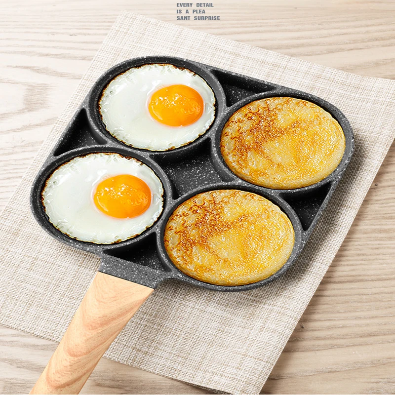 Сковорода 2/4 отверстие антипригарная Кастрюля кастрюля для кухни приготовления стейка яйцо блинница прочные антипригарные сковороды деревянная ручка сковорода набор