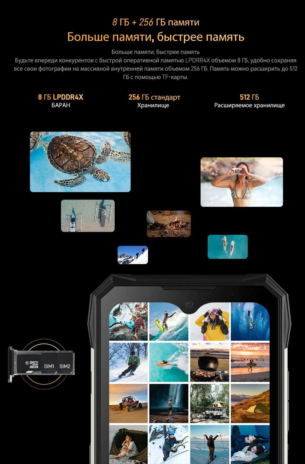 Оставайтесь впереди соревнований с быстрой оперативной памятью 8 Гб lpdr4x, удобно сохраняя все ваши фотографии