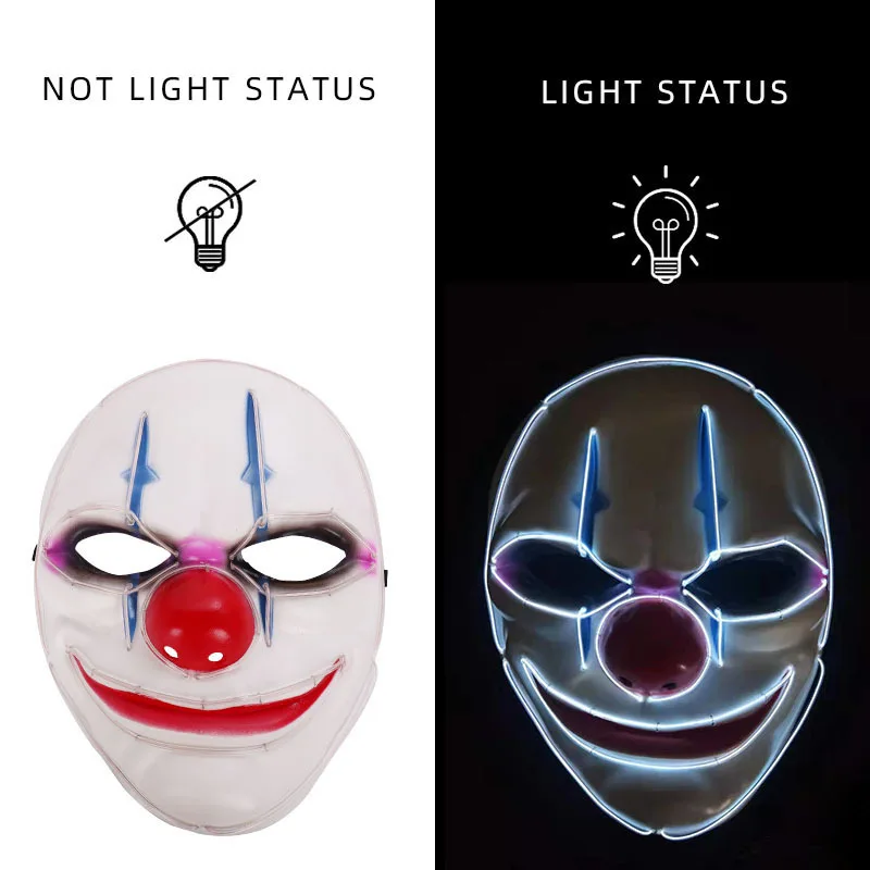 2022 Хэллоуин страшный светодиодный светильник маска скелет ужас костюм клоуна для косплея реквизиты карнавальные вечерние озорные маски для взрослых