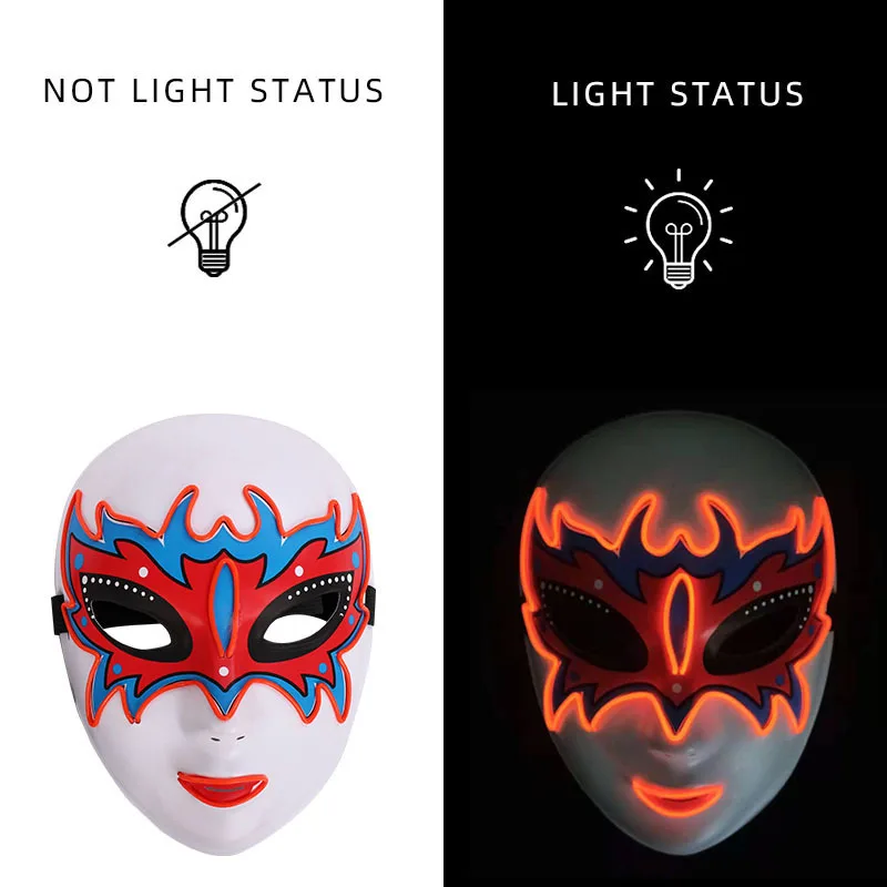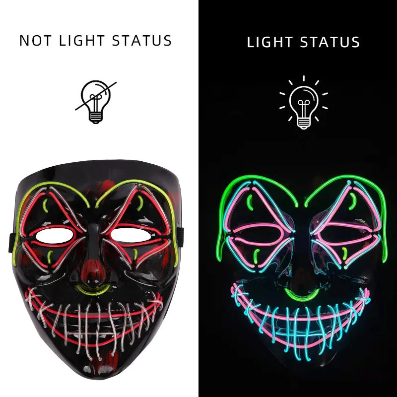 1. Эта маска изготовлена из высококачественного ПВХ и El холодный светильник, без УФ-повреждений, без побочных эффектов на тело человека.