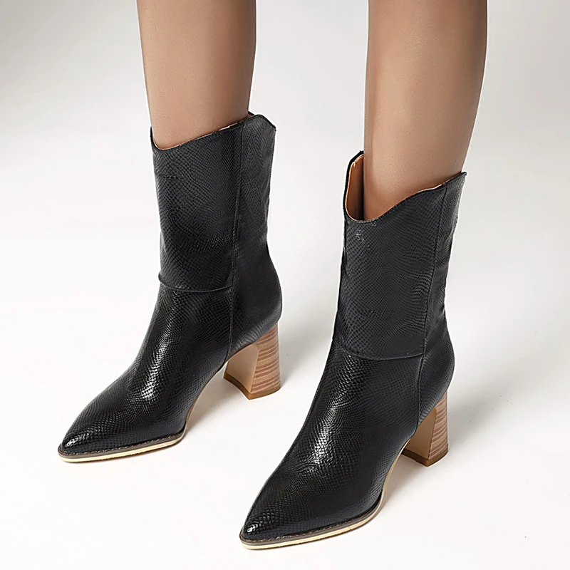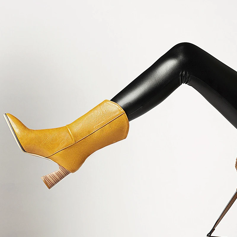 Женские короткие ботинки с квадратным носком Модные Новые однотонные из