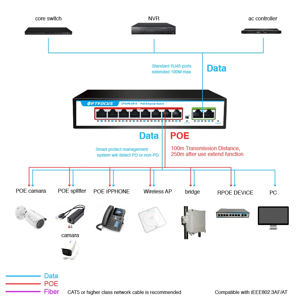 Коммутатор PoE идеально подходит для питания устройств PoE, таких как ip-камеры, точка доступа WLAN, ip-телефоны, офисные системы контроля доступа, И других устройств PD и предлагает линейку высококачественных продуктов, которые обеспечивают полное решение для приложений Ethernet в различных средах.