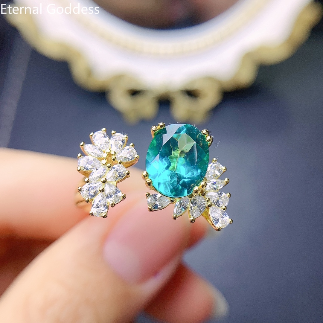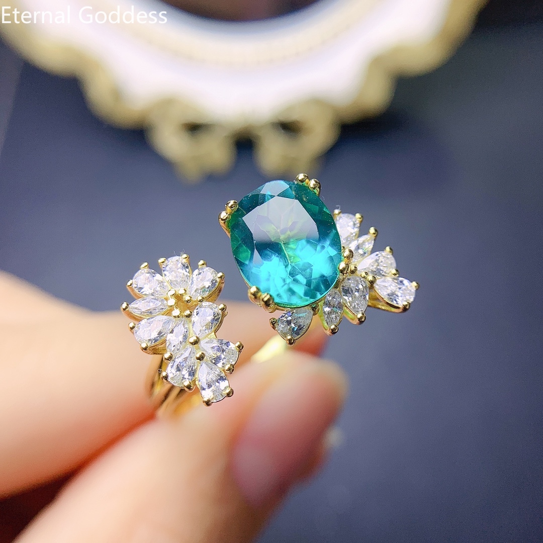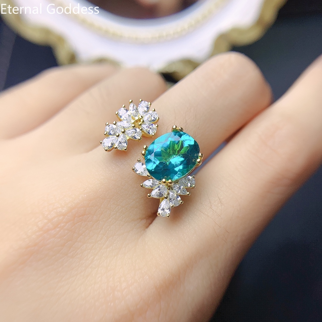 925 пробы серебро 8*10 мм бутик Лондон Голубой топаз кольцо Дамы кольцо подарок на день рождения Роскошные ювелирные изделия индийский ювелирный набор