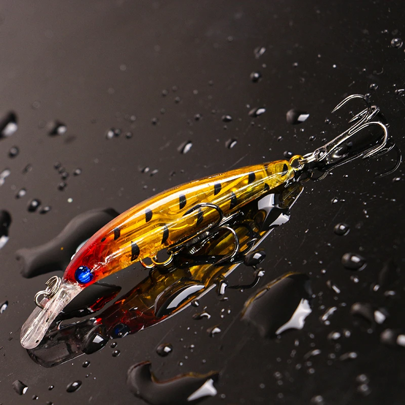Features:1)Simulated colors and realistic crankbait with lifelike bait fish swimming action to attract fishes which can be used in both saltwater and freshwater.2)Using the latest coating and surface realistic fish pattern with 3D eyes has excellent light lure fish effect.3)Noise model design which has unique rhythmic sound make crank baits more easily to be attacked by various fishes.4)With steel ball inside,the ball is always rolling when dumping which can control barycenter easily and can be casted far.5)Durable ABS construction make it rigged with sharp treble hooks which makes it a powerful catching tool.6)These Wobbler lures targets fish including Bass, Walleye, Redfish, and Speckled Trout, etc.. They feature bright colors, dual anti-corrosion hooks, stainless steel split ring and simulated fish scale.7)Each bait is hand-tuned and tank-tested for perfect swimming action right out of the box, even gets the undivided attention of other disinterested gamefish.Features Summary:- Crazy Swing Motion At Any Speed- Super-lifelike Exterior- Built-In Gravity Ball- Widely Fishing Species- 100% Satisfaction GuaranteeHumans have vision, hearing, smell, taste, lateral line (skin's response to water temperature), and fish also have it. Lure fishing is the most important in terms of vision and lateral line response. The visual and lateral line response depends on the weather. It is more conspicuous when used on cloudy days. White and pink, silver or yellow in the daytime, of course, depends on the color of the water. When the water is cloudy, the natural color black or red may be easy to use, but when the water is clear, it is cyan and brown. In addition, the refraction of light must be considered. The problem is the problem of water temperature and water quality, but there are two colors that are absolute, that is, red and black. Red is the color or pink that the abdomen will show when the animal is frightened, while black is the color that the sun is up, the lure is on the water, and the fish looks up underwater and can only see the color.