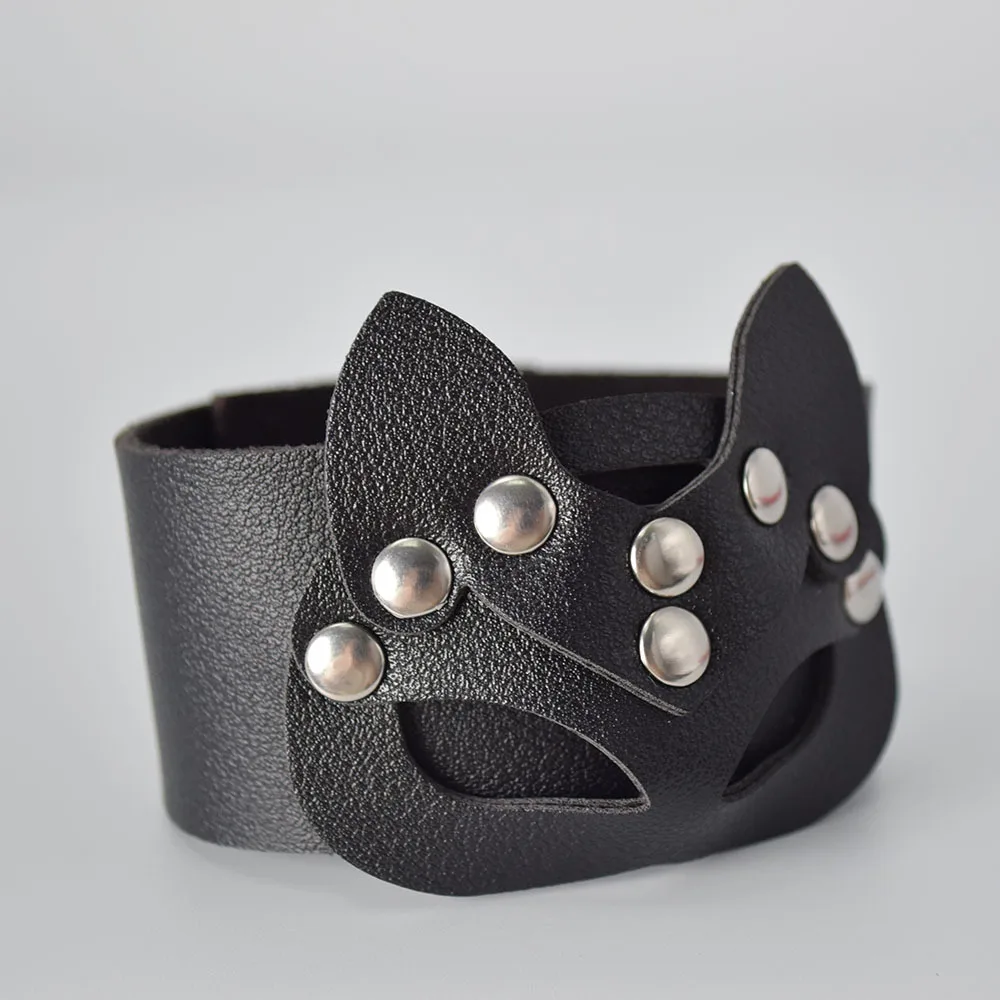 Кошачьи шпильки для ушей широкие манжеты из искусственной кожи панк готический рок унисекс браслет женские и мужские ювелирные изделия кожаные браслеты Harajuku 2022