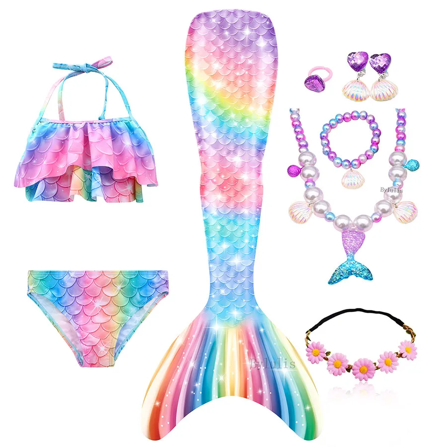 Набор 1:1 * юбка с хвостом русалки + 1 * Топ + 1 * шорты + 1 * гирлянда + 1 * Жесткий плавник + 1 * ожерелье + 2 * серьги + 1 * браслет + 1 * кольцо