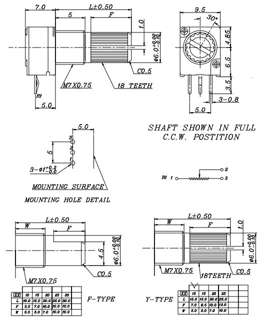 5 шт. RV097NS 1K 5K 10K 20K 50K 100K 500K с переключателем аудио 5pin вал 15 мм усилитель уплотнительный потенциометр