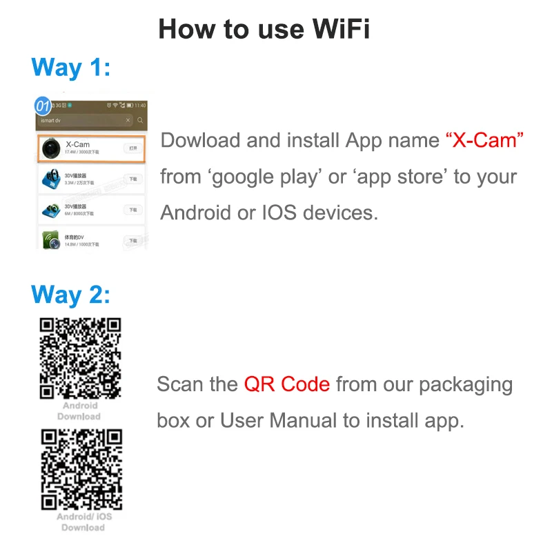 Используя приложение X-Cam на вашем смартфоне, вы можете управлять камерой удаленно, включая управление всей камерой, просмотр в реальном времени, воспроизведение фотографий и обмен выбранным контентом и так далее.