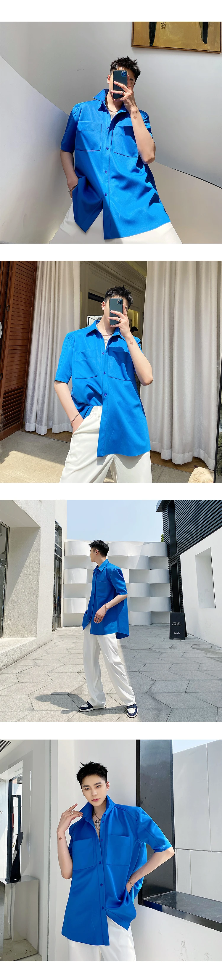 Рубашка мужская с воротником-стойкой или отложным воротником свободная сорочка