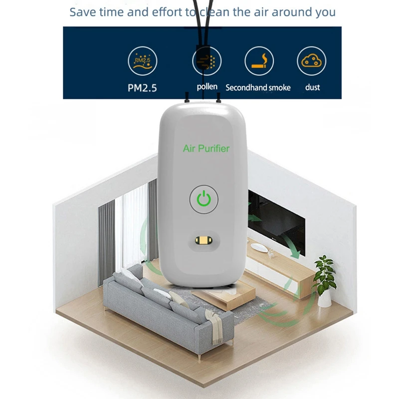 3. Долговечный: портативный очиститель воздуха имеет usb-порт для зарядки, который может заряжаться в течение 2 часов и используется для обеспечения свежего воздуха около 40-80 часов