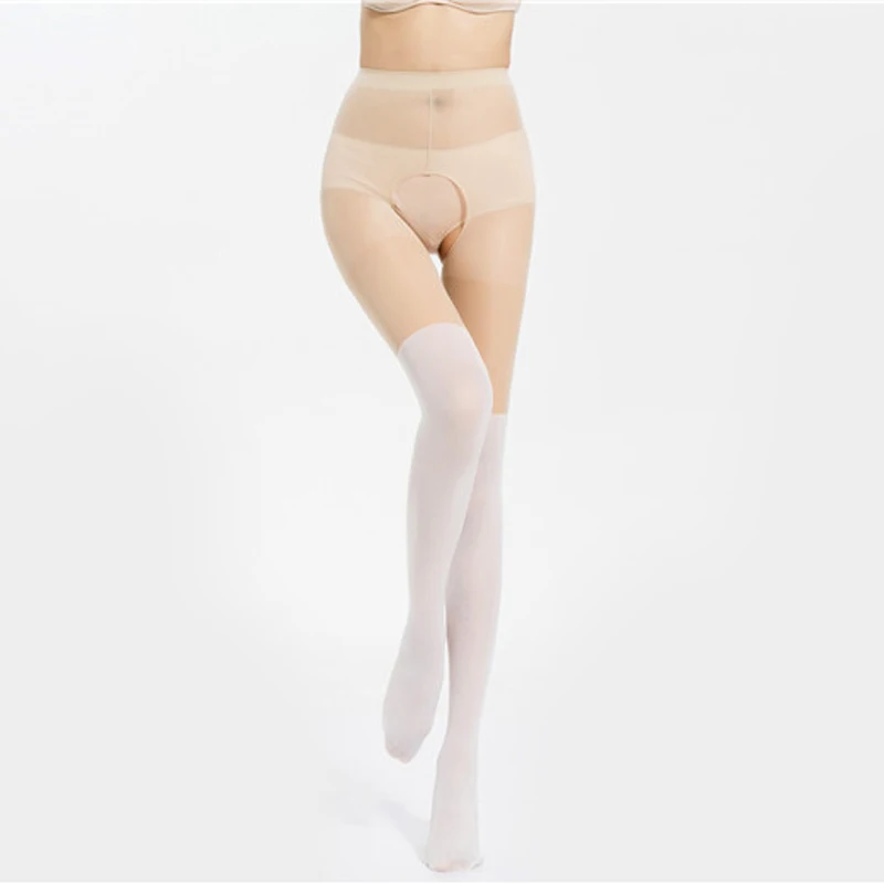 sexy stockings fishnet Tights Women Underwear High Open Crotch Tights Shiny Splicing High Waist Pantyhose Femme Lingerie
