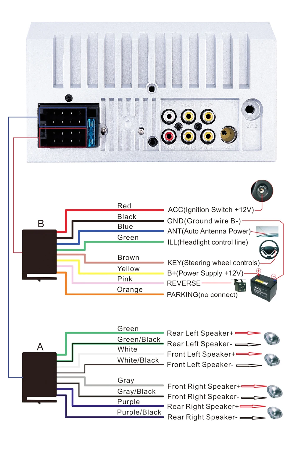 2. После получения продукта, пожалуйста, попробуйте проверить, является ли машина нормальной, а затем установите его (метод тестирования: подключите красные и желтые линии к положительному полюсу и черную линию к отрицательному полюсу источника питания 12 В). При установке, пожалуйста, будьте осторожны, чтобы не подключать линию неправильно, чтобы не повлиять на нормальное использование. При подключении проводов динамика обратите внимание на положительные и отрицательные полюсы.