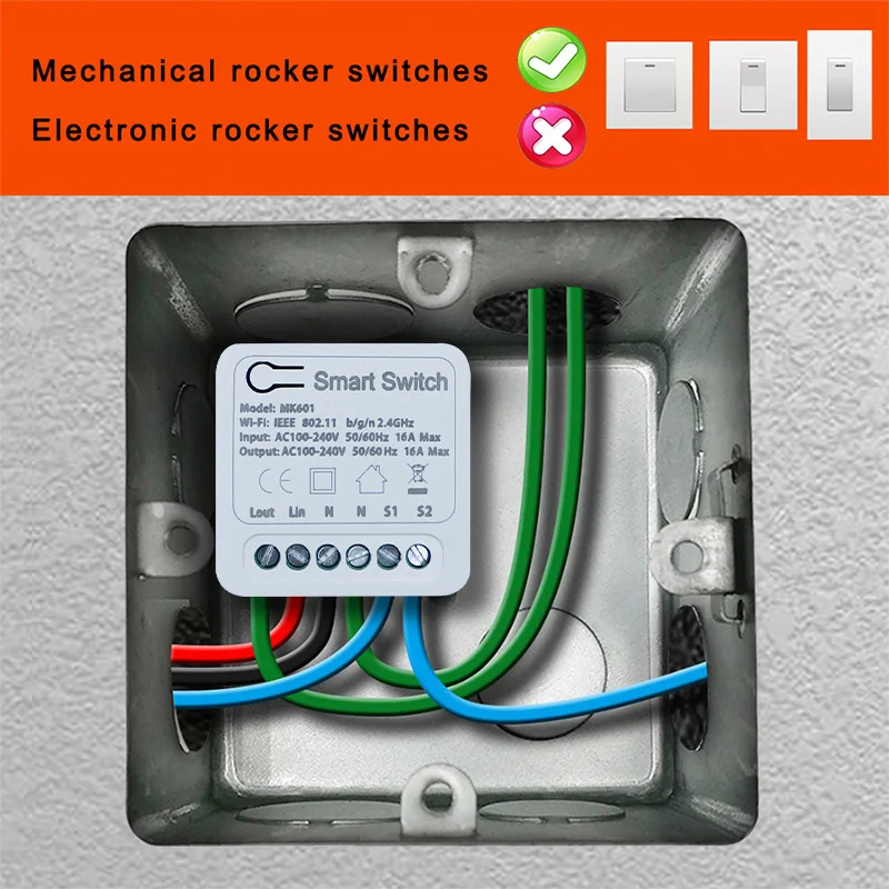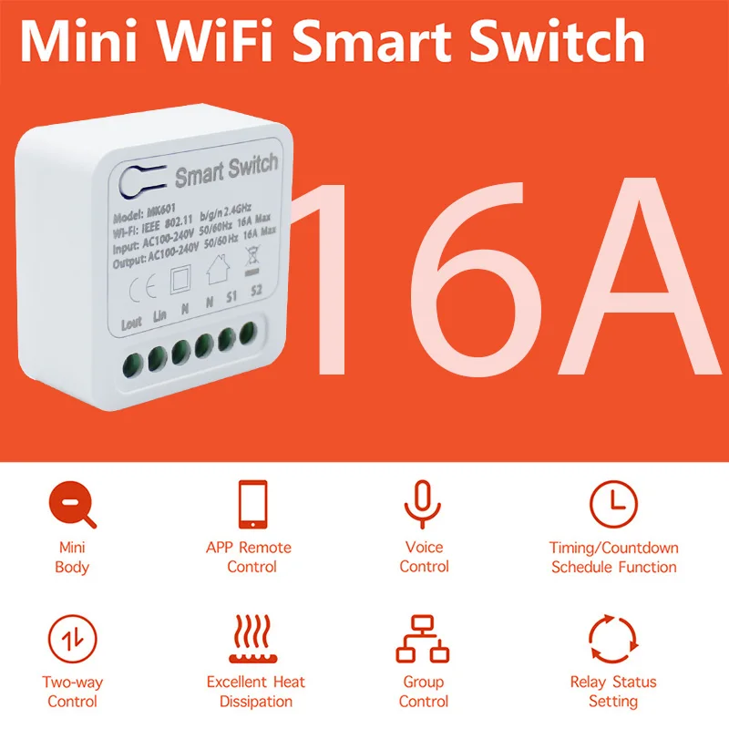 Умный мини-переключатель Tuya с 2-позиционным управлением, переключатель 16 А, датчик автоматизации умного дома Tuya, работает с Alexa Alice, Google Home