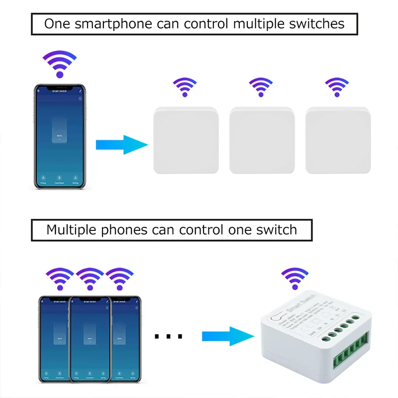 Вы можете управлять переключателем, временем, обратным отсчетом и другими функциями устройства через ваш мобильный телефон.