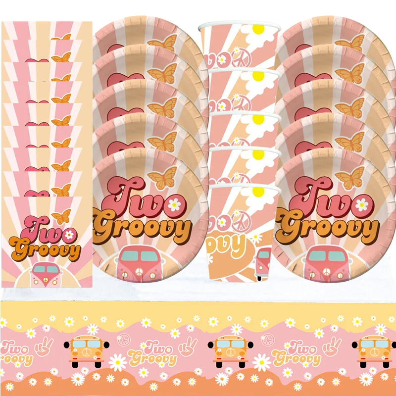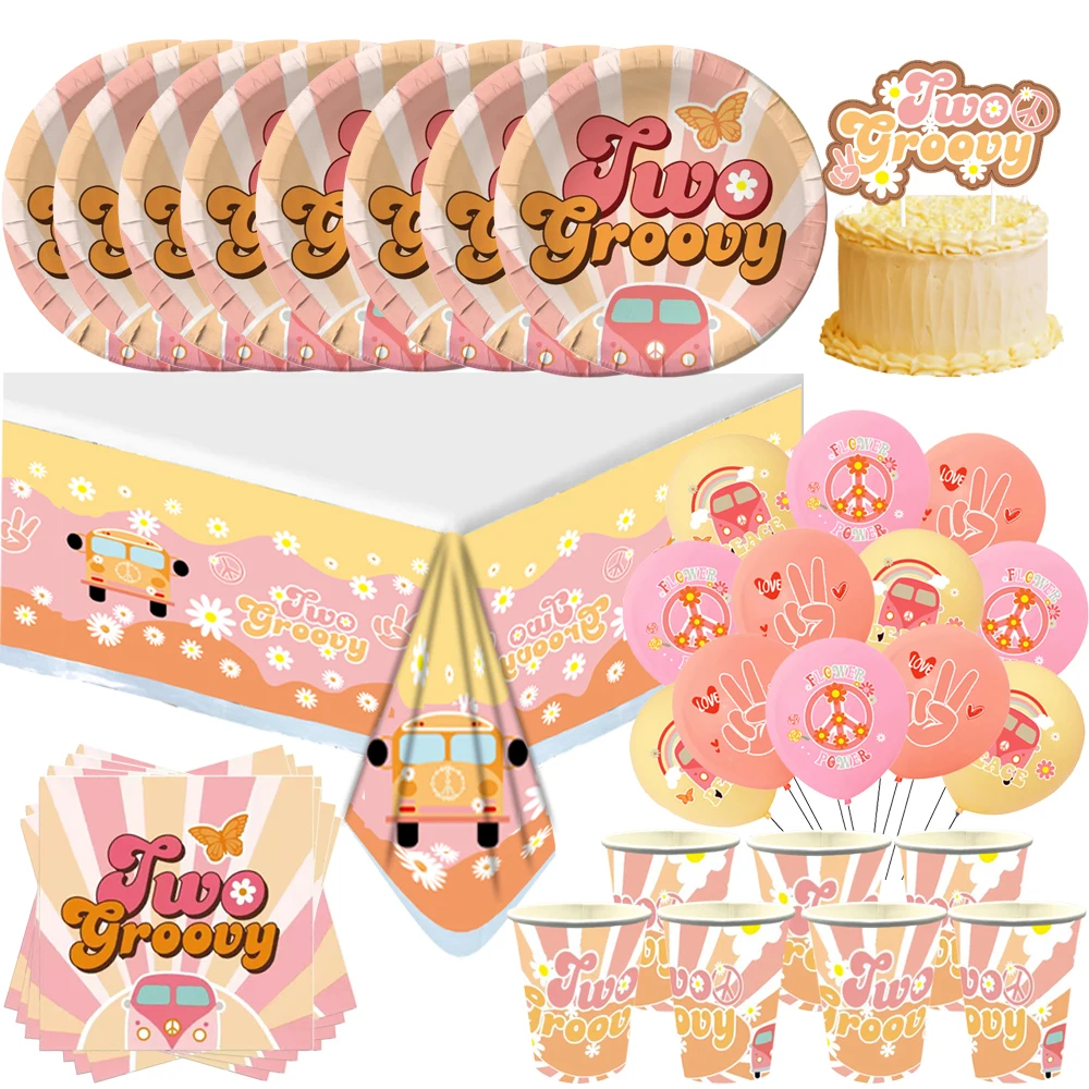 Два Groovy вечерние украшения ретро хиппи бохо знак хиппи тема товары для дня рождения Девушка Вечерние баннер маргаритки цветок Groovy