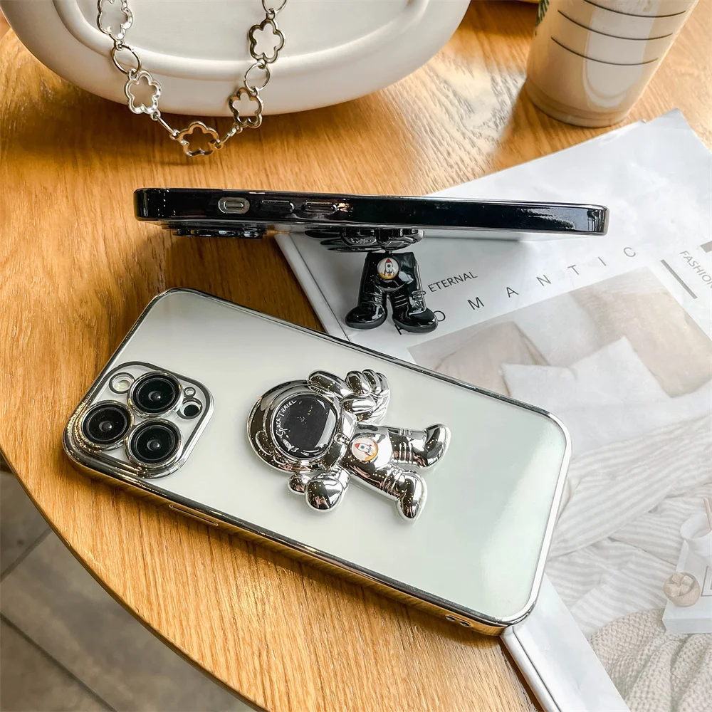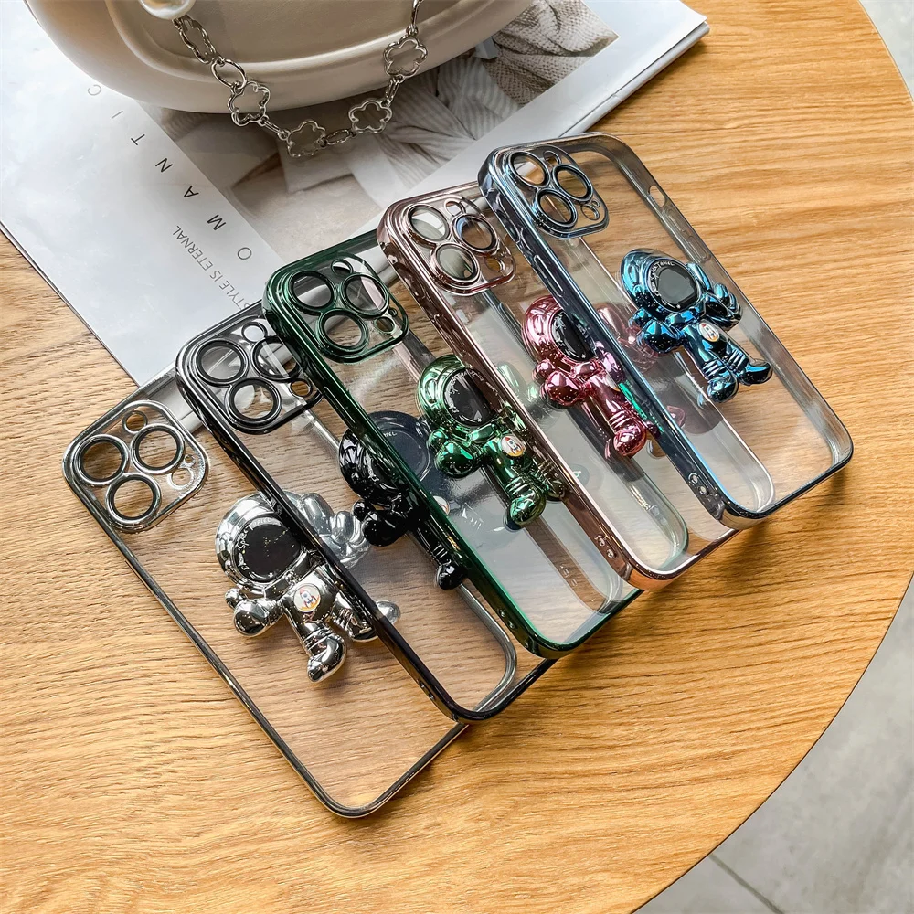 Корпус кронштейна с покрытием космонавта для iPhone 1213 Pro Max Mini 11 XS x XR 78, plus se, прозрачный чехол со стеклом для камеры