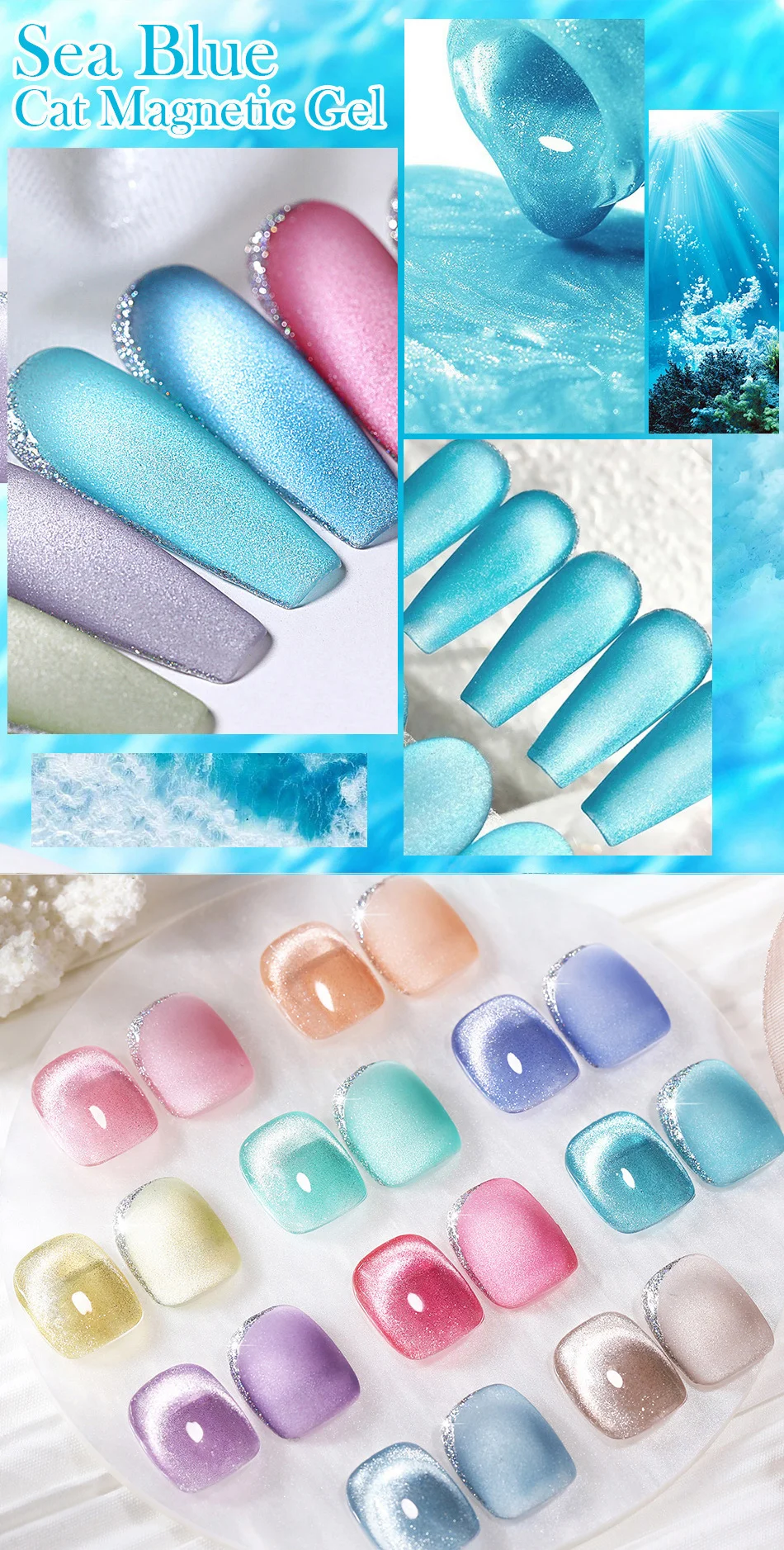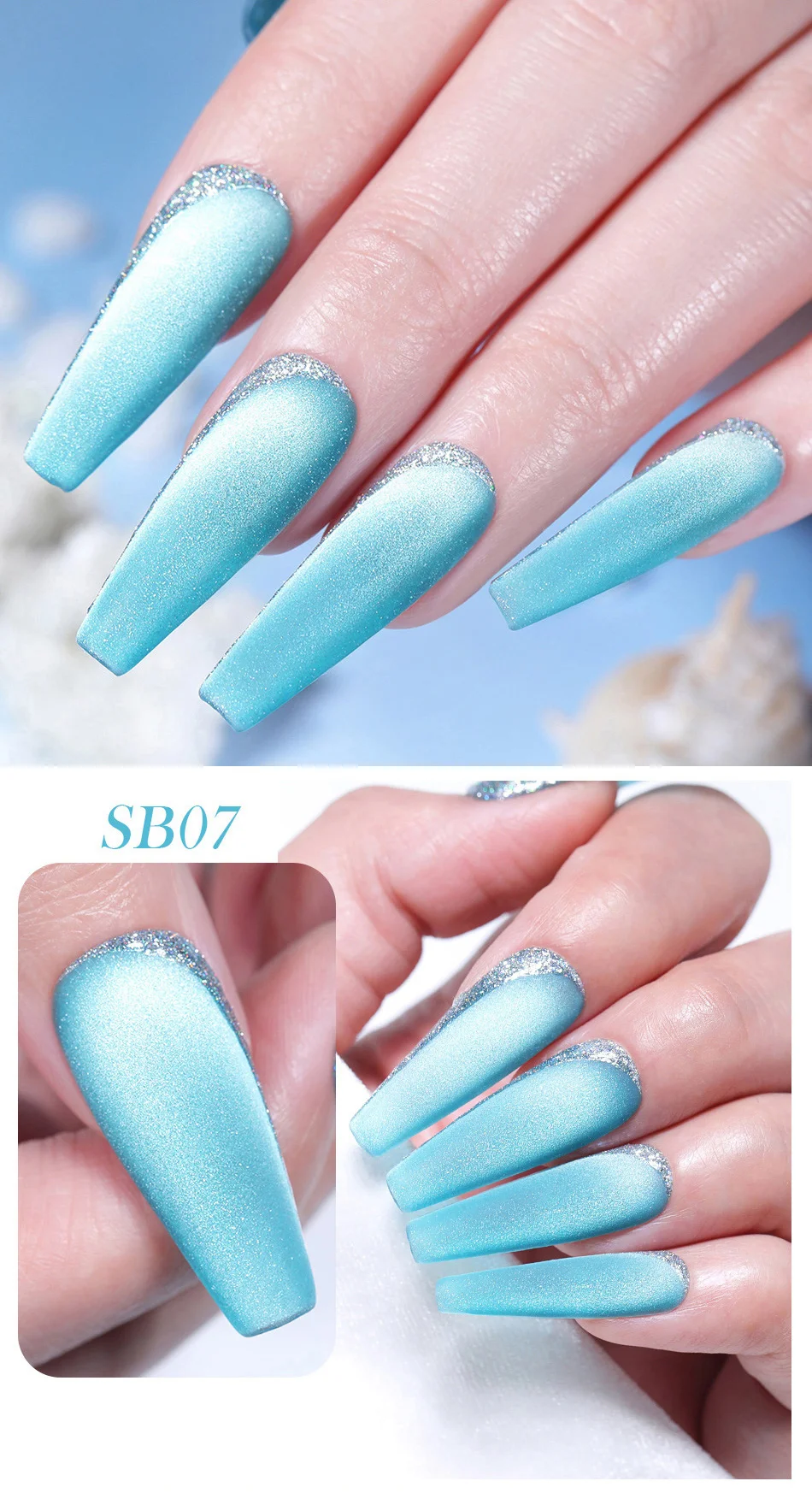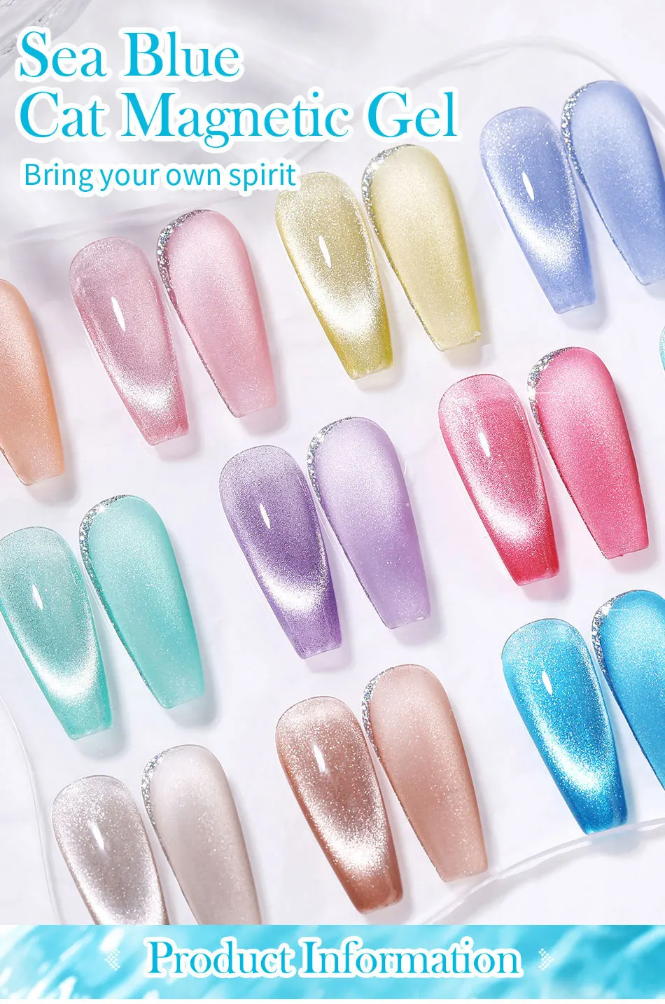 Step2. Нанесите первый слой магнитного геля «морской синий кот», и используйте магнитную палку, нажмите нужную форму, а затем вылечите ее.