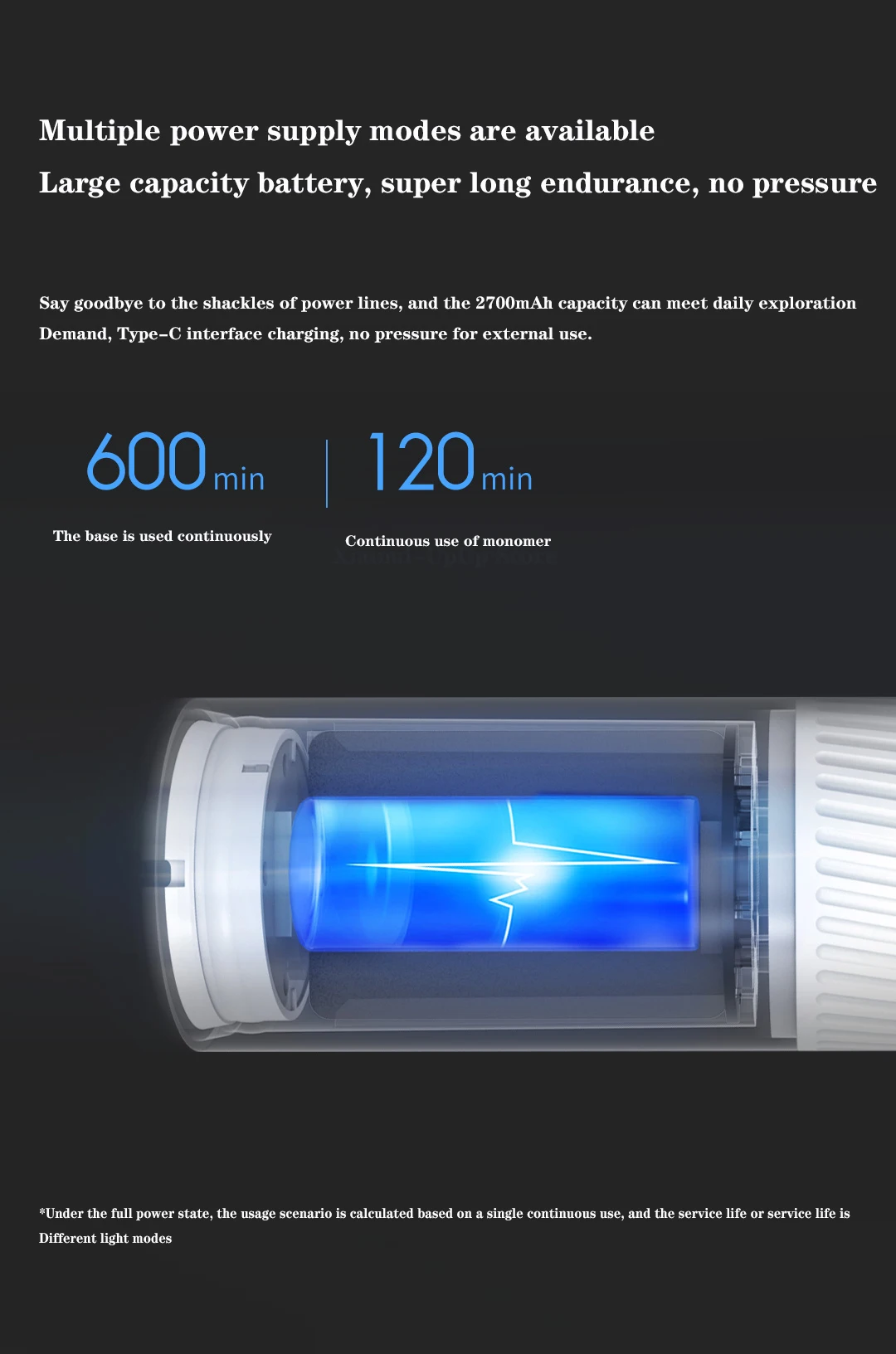 Попрощайтесь с окантовками шнура питания, емкость 2700 мА · ч удовлетворяет потребности ежедневного исследования, заряжается интерфейс Type-C, а внешнее использование не требует стресса.