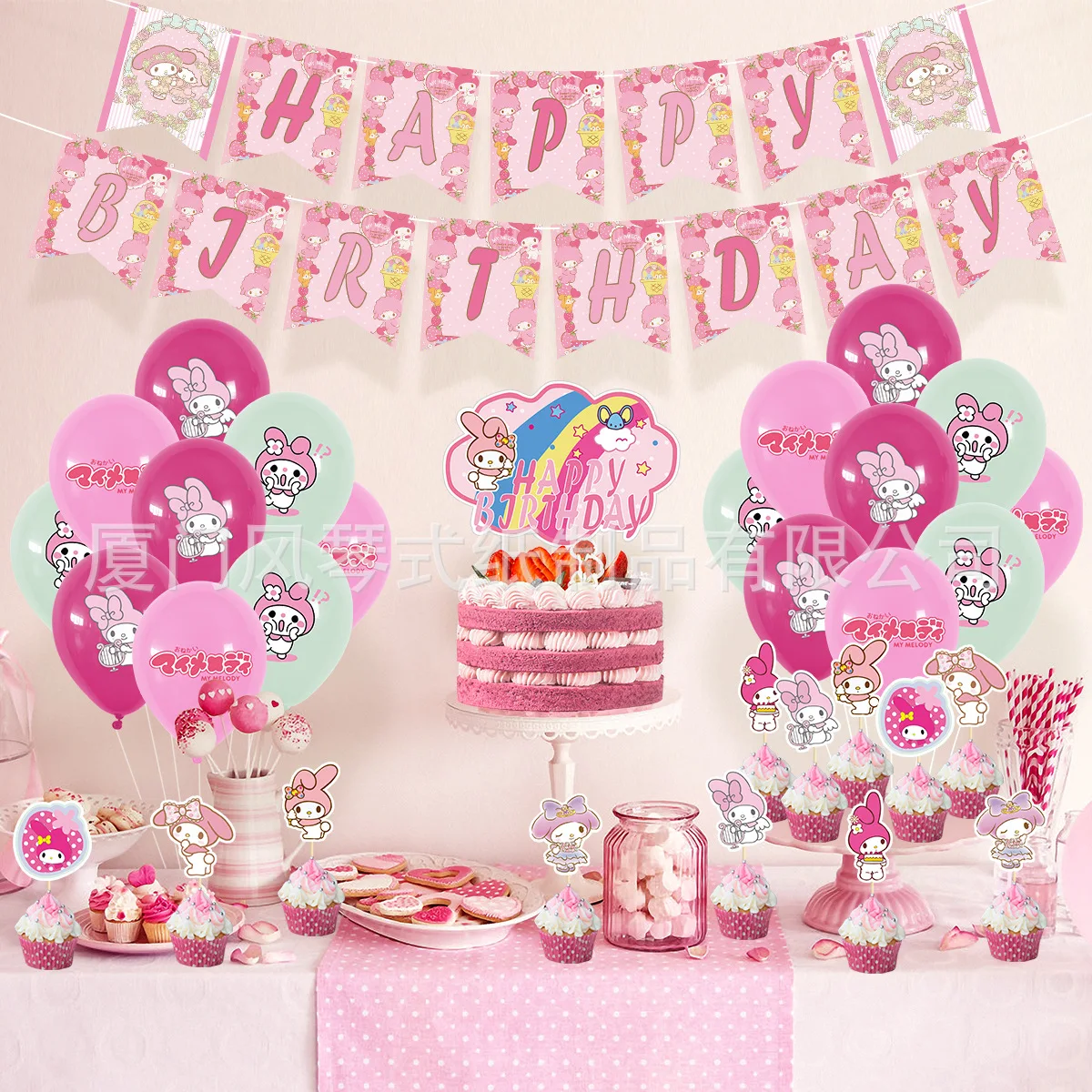 Имя: мелодия мультфильм день рождения воздушный шар набор аниме игрушка воздушные шары тянуть флаг торт тянуть веревку флаг открытка в виде домика Висячие карты воздушный шар набор