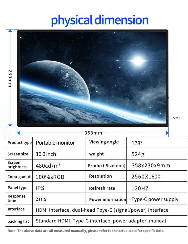 120 Гц игровой Монитор 16 дюймов портативный монитор 2K 2560x160 0 IPS экран компьютер Ноутбук Дисплей HDMI USB C для Mac PC PS 4 5 Xbox2K яркое изображение:16 дюймов портативный монитор принимает 16:10 экран, разрешение до 2560x1600. Благодаря 100% цветовой гамме sRGB, 350cd/㎡ яркости и контрастности 1000:1, частота обновления 120 Гц показывает реальное изображение игры/сцены/работы идеально и быстро. Этот портативный монитор hdmi имеет разрешение 2K (2560*1600), когда вы подключаетесь к ноутбуку/ПК и т. д., пожалуйста, настройте оригинальное Разрешение устройства на 2560*1600.Благодаря своей сверхтонкой: Портативный компьютерный монитор Толщина: 0,3 дюйма, вес: 0.75lb. Когда вы находитесь в деловой поездке или путешествии, идеально подходит как дополнительный экран для вашей работы. Портативный монитор USB C поставляетсяБезрамный/ультратонкий ips-дисплейПо сравнению с использованием нескольких мониторов, между мониторами нет ободка и обеспечивает плавное скольжение даже с широкой боковой информацией. Отличная видимость и устраняет необходимость в раздражающих оконных работах, чтобы помочь вам работать эффективно. Когда вы находитесь в деловых поездках или путешествиях, вы можете работать на широком экране. Монитор очень мобильный, его можно носить с портативной игровой консолью, чтобы вы могли легко наслаждаться игрой в любом месте.Широко совместимый, подключи и работай: 2K портативный монитор с 2 полнофункциональными USB-C портом и мини HDMI портом, который легко подключается к ноутбуку, ПК, mac, смартфонам, XBOX, PS3 /PS4 /PS5, переключатели и т. д. (должны поддерживать USB3.1 или thunderbolt3, или использовать IOS/Android к HDMI адаптеру).Расширьте экран вашего ноутбука/телефона: 3-в-1 дисплей поставляется в трех с помощью режима: дубликат режим, режим расширения, второй экран только режим. Масштабируйте экран телефона в режиме рабочего стола или в режиме телефона. Синхронизация, чтобы наслаждаться видео, музыкой, игрой при работе с горизонтальной и вертикальной настройкой. Несколько режимов абсолютно соответствуют офисным потребностям. Просто нажмите «windows + i», чтобы войти в настройки на ПК/ноутбуке, выберите «систему» и Настройте режим отображения и направление.