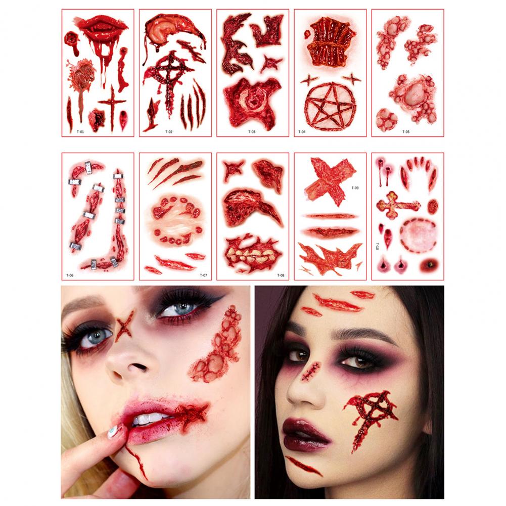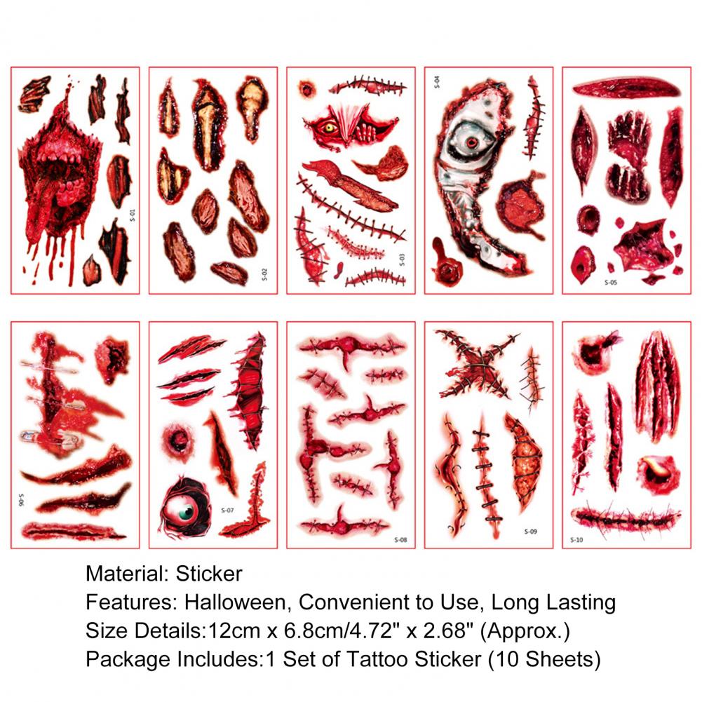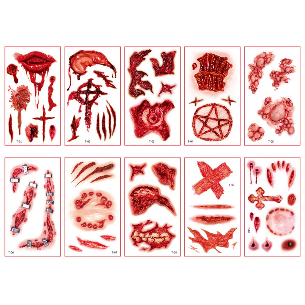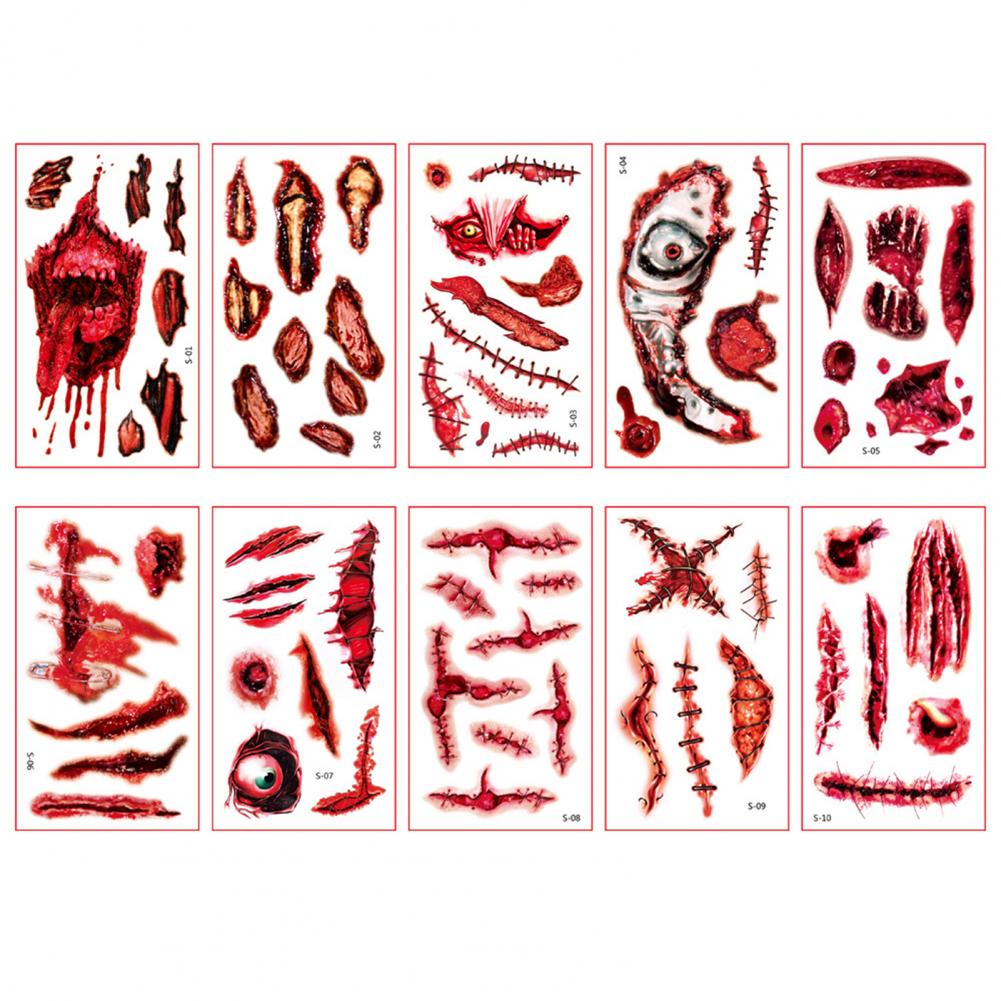 10 листов/набор стикер татуировки s интересный Водонепроницаемый 3D эффект безболезненный ролевые игры Реквизит яркий Хэллоуин шрам стикер татуировки