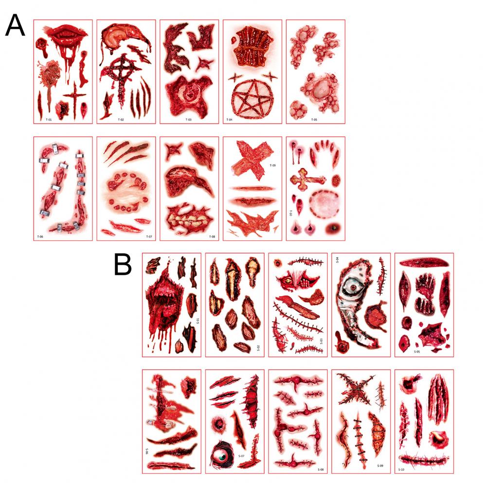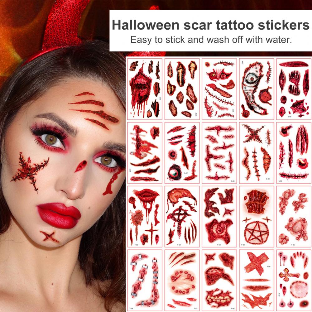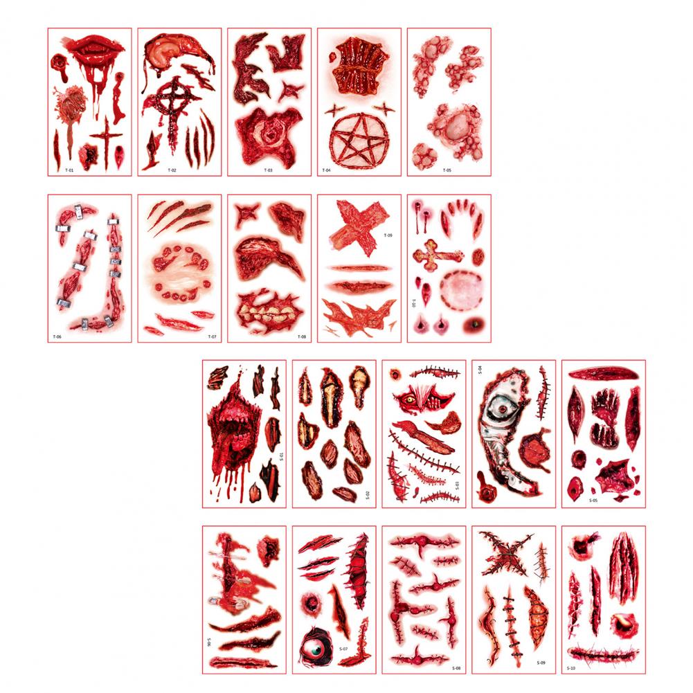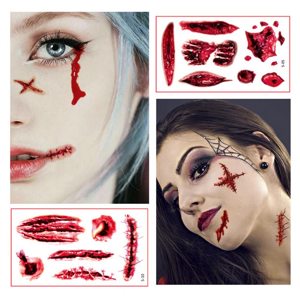 10 листов/набор стикер татуировки s интересный Водонепроницаемый 3D эффект безболезненный ролевые игры Реквизит яркий Хэллоуин шрам стикер татуировки