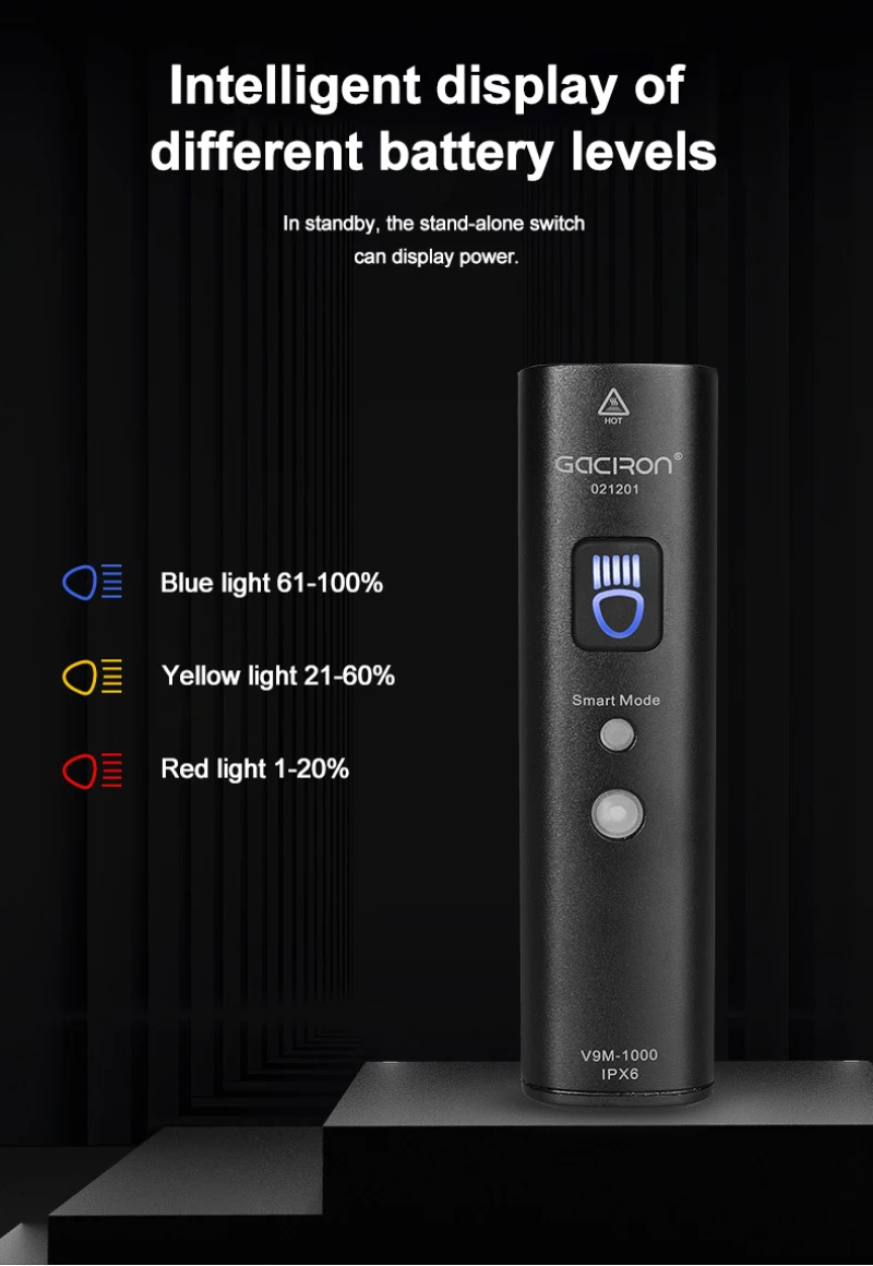 ➤Remin дисплей батареи: различные цвета показывают оставшуюся мощность