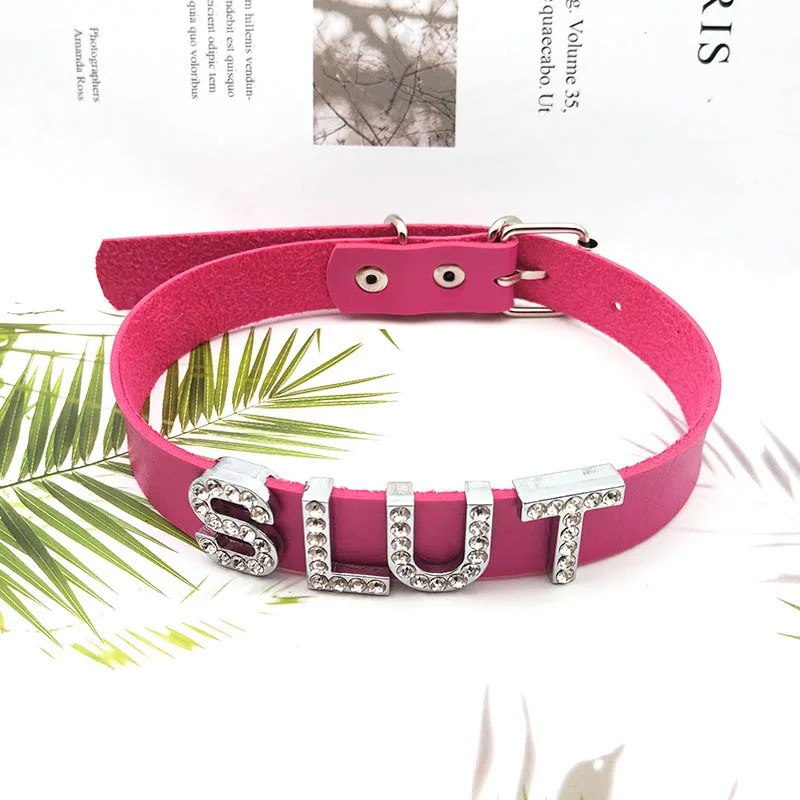 Сексуальные Горячие Стразы с буквами, ошейники, колье, ожерелье, черный готический панк, для взрослых, Секс косплей, персонализированные пользовательские чокер, ювелирные изделия