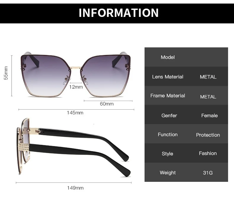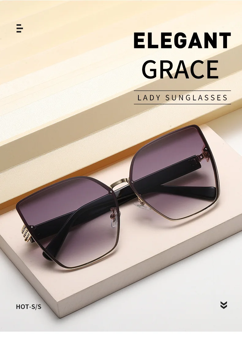 Очки солнцезащитные женские без оправы роскошные многоугольные большие модные