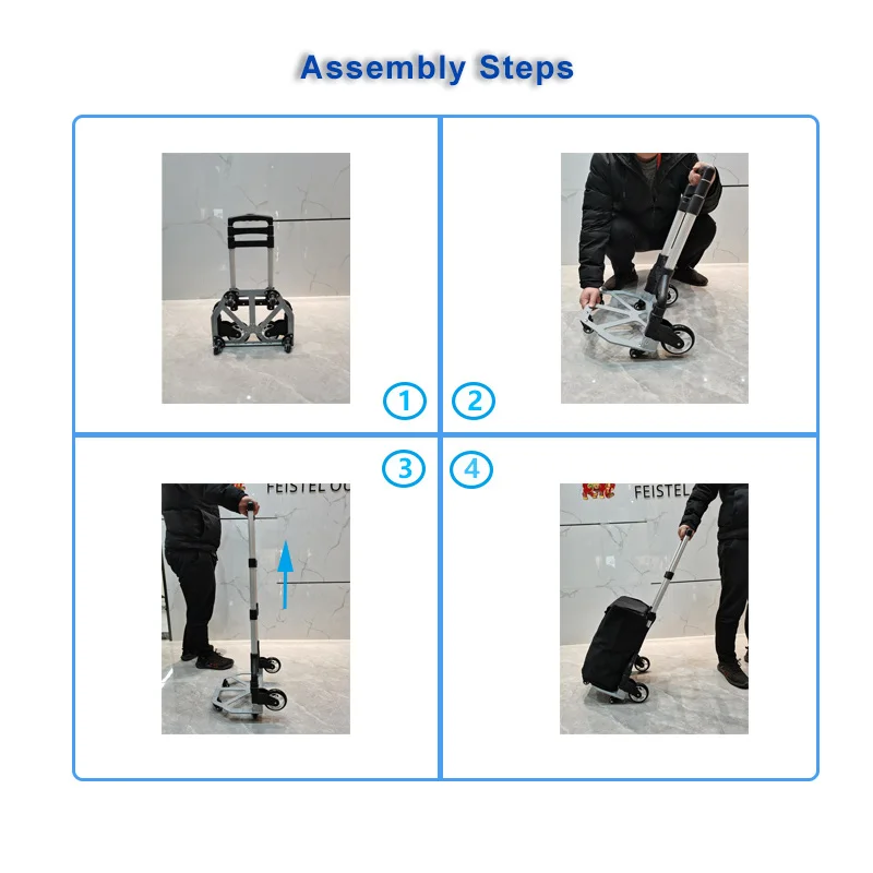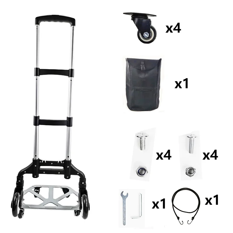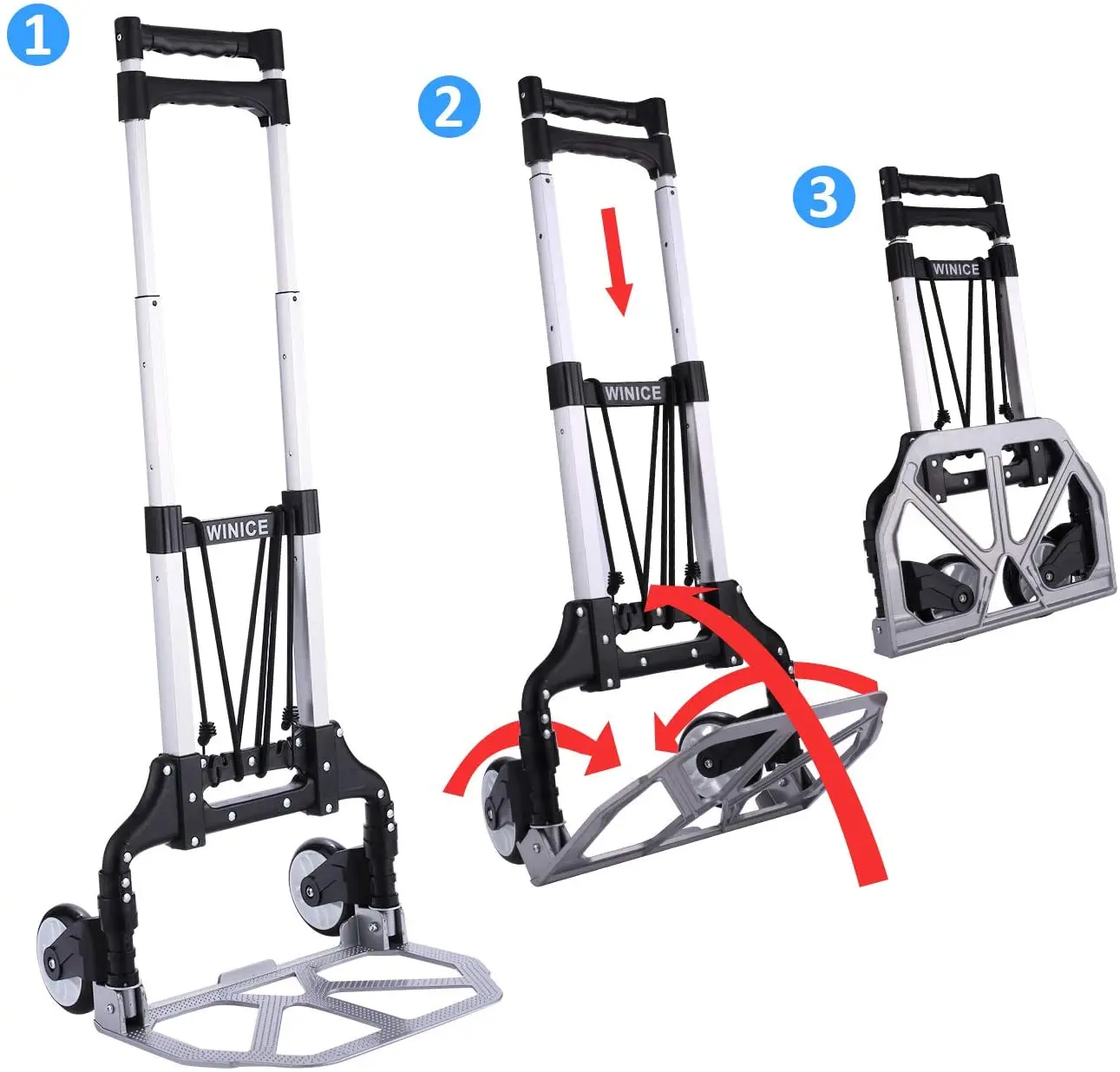【Durable Hand Cart】Made of solid rust-proof aluminium alloy, particle anti-skid design with PVC wheels, which built-in 2 bearings, strong and wear-resistant.