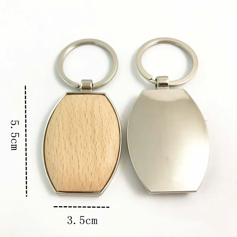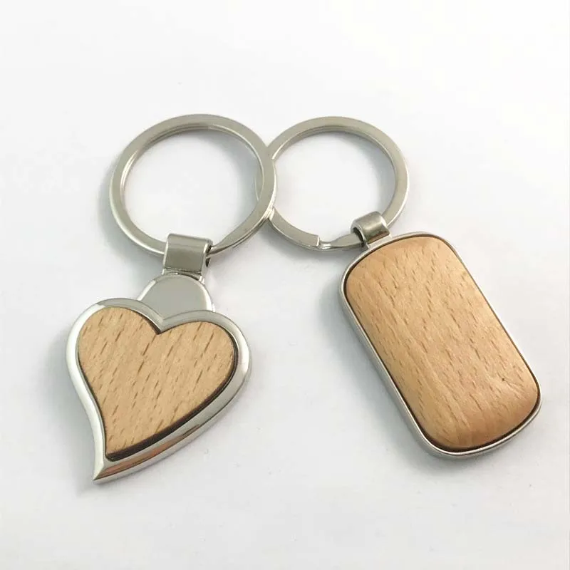 Metal Wood Key Chain Wooden Pendant Heart Oval Beech Key Chain Creative Promotion