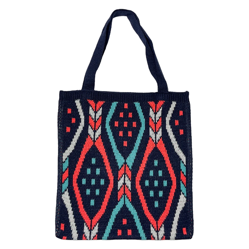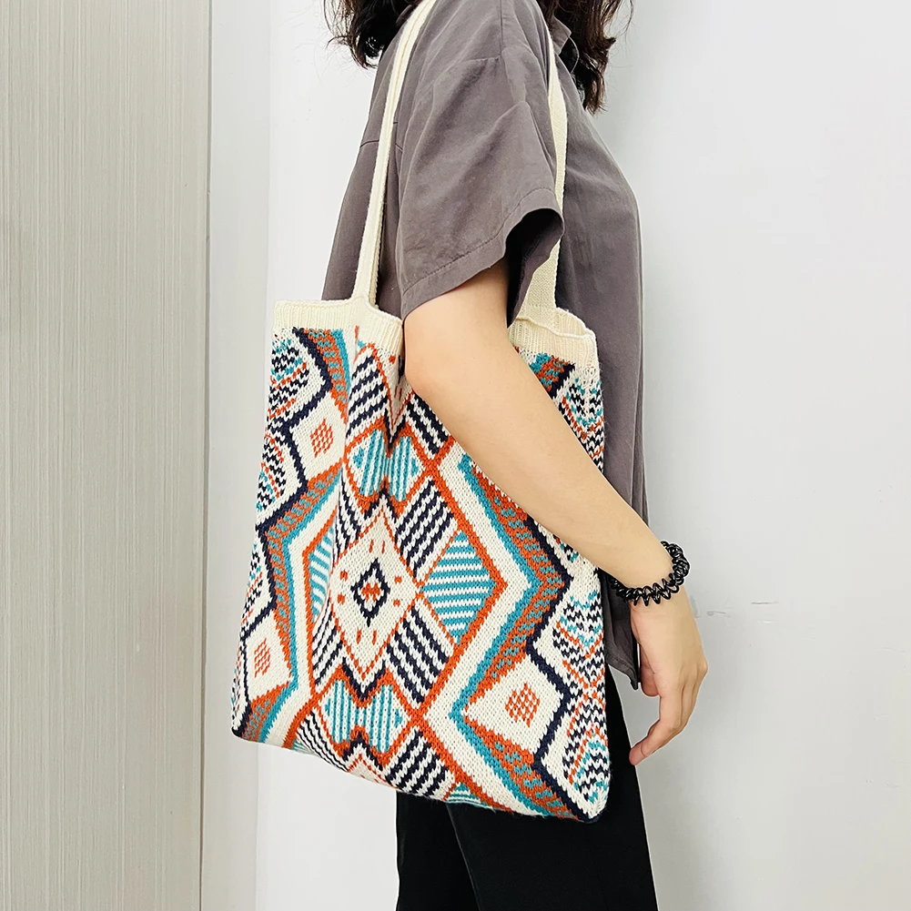 Модная вязаная сумка-тоут через плечо, Женская этническая сумка-Топик в стиле бохо, сумка-кошелек с ручками