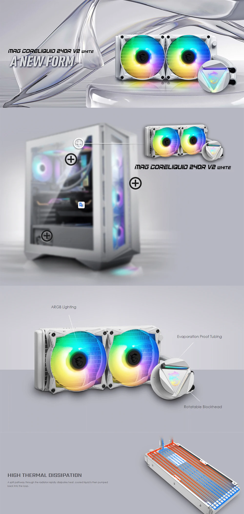 Водяное охлаждение MSI MAG CORELIQUID 240R V2 RGB кулер вентилятор для AMD Intel CPU кулер материнская плата охладитель воды CPU водяное охлаждение MSI MAG CORELIQUID 240R V2 белый кулер ARGB вентилятор для Процессор AMD Intel кулер материнская плата Охлаждающий радиатор LGA 1700 MSI MAG Core Liquid 240R V2 белое водяное охлаждение LGA 115X 1200 1366 AM4 AM3 + двойной вентилятор ARGB Gaming MSI Cooling Dual Fans Intel AMD