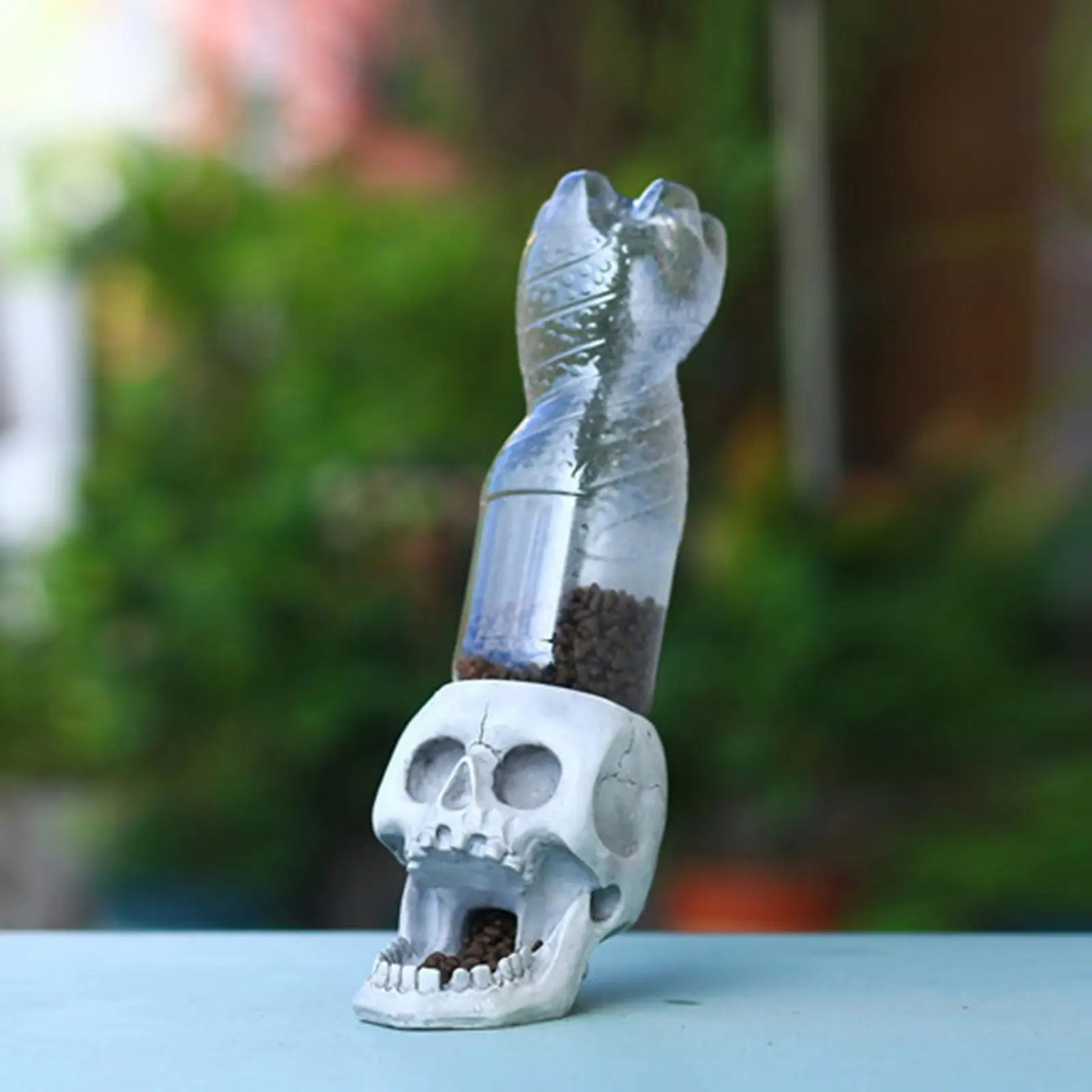Яркий диспенсер для животных в форме головы черепа, играет волшебную роль во дворе/саду как ужасное украшение на Хэллоуин, полное веселья.