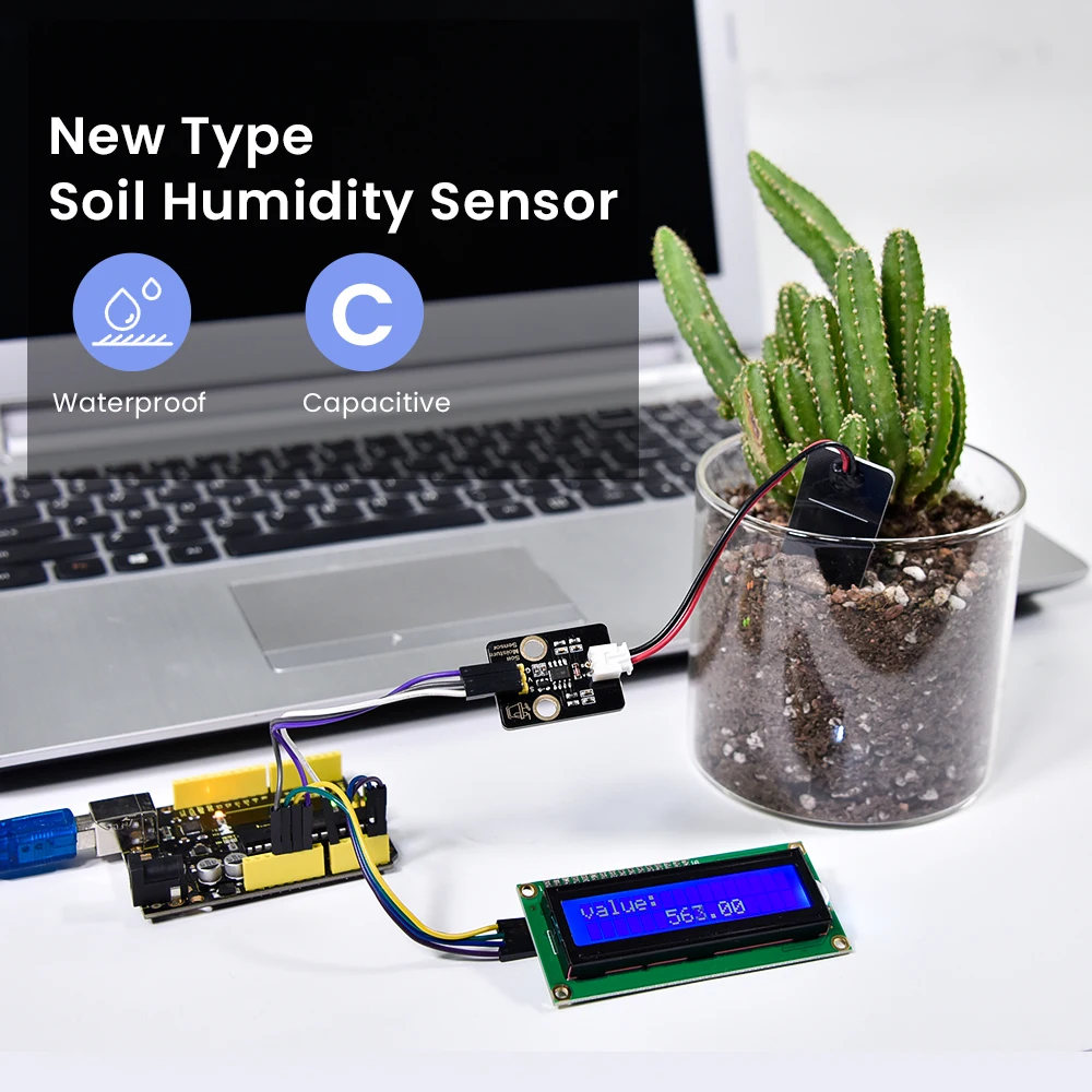 This new type capacitive soil humidity sensor differs from other resistive sensors, adopting capacitive sensing principle to detect soil humidity.
